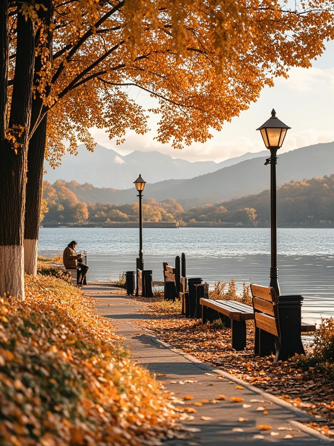 🍂秋日逛公园,美景如画卷✨!金黄的落叶铺满小径,每一步都踏出了岁月的温柔~🍃远处湖面波光粼粼,仿佛藏着无数闪耀的梦想。快来这里,和我一起感受这份宁静与美好吧!