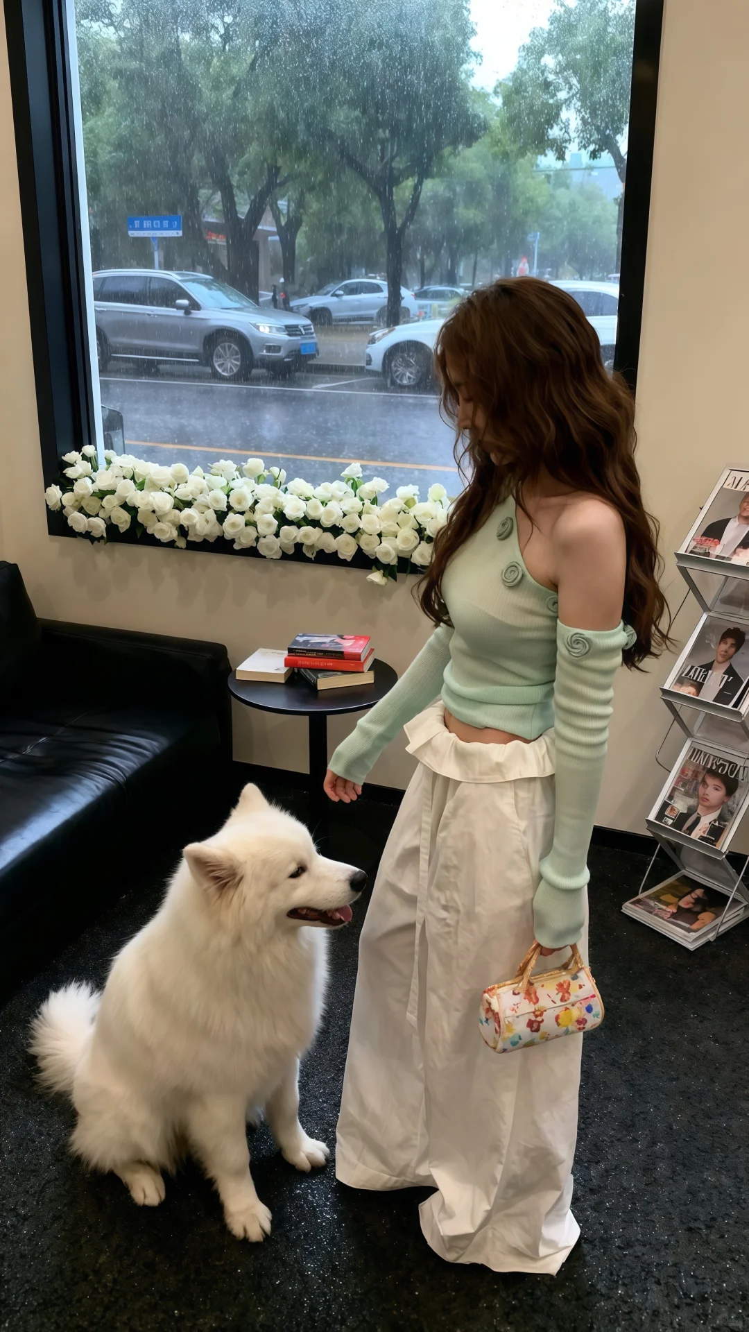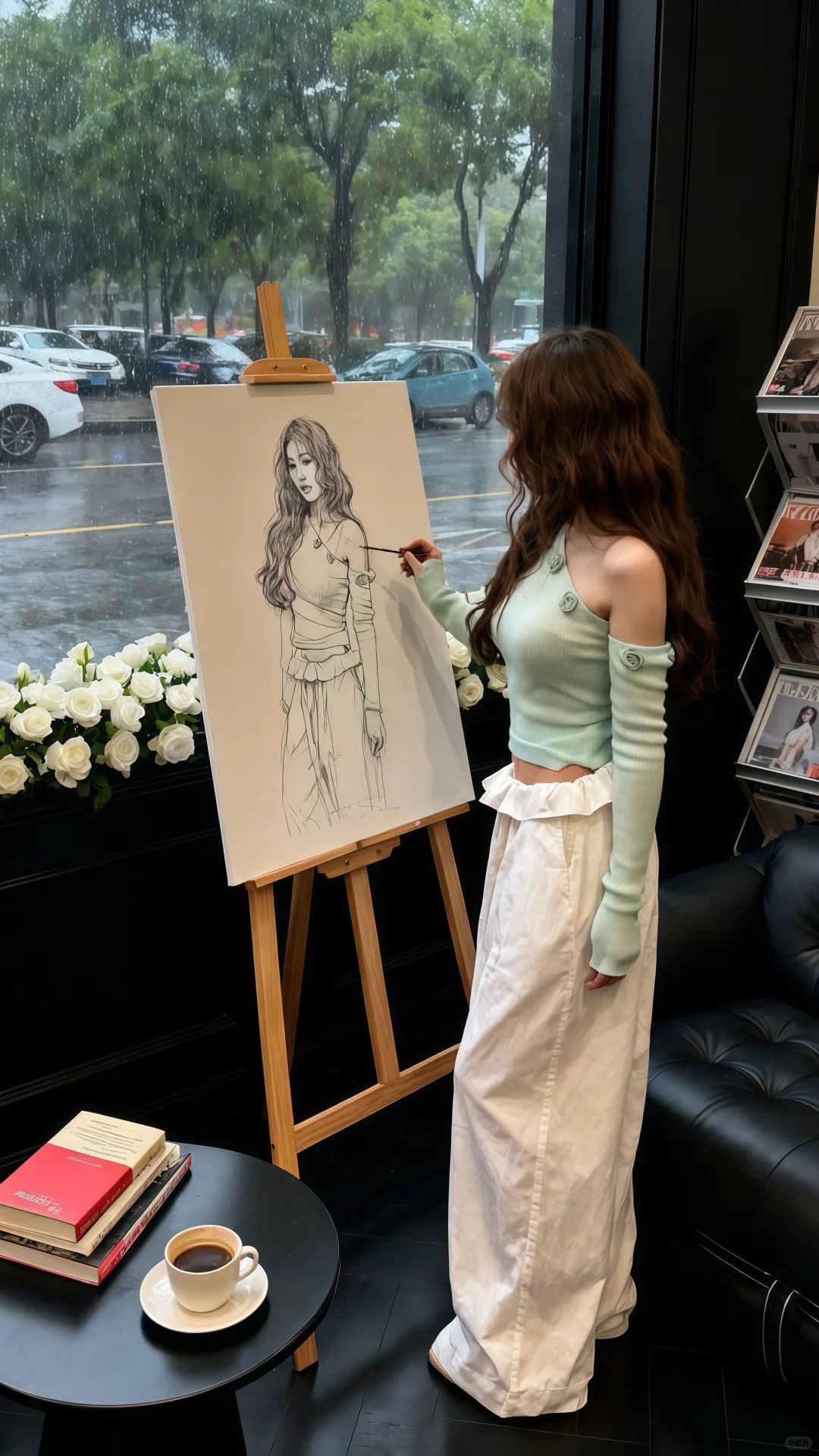 她与萨摩耶亲昵互动时,是温柔甜妹;在人体模型前调整衣摆,化身时尚设计师;站在画架前描摹自己的穿搭画像,又成了专注的艺术家。