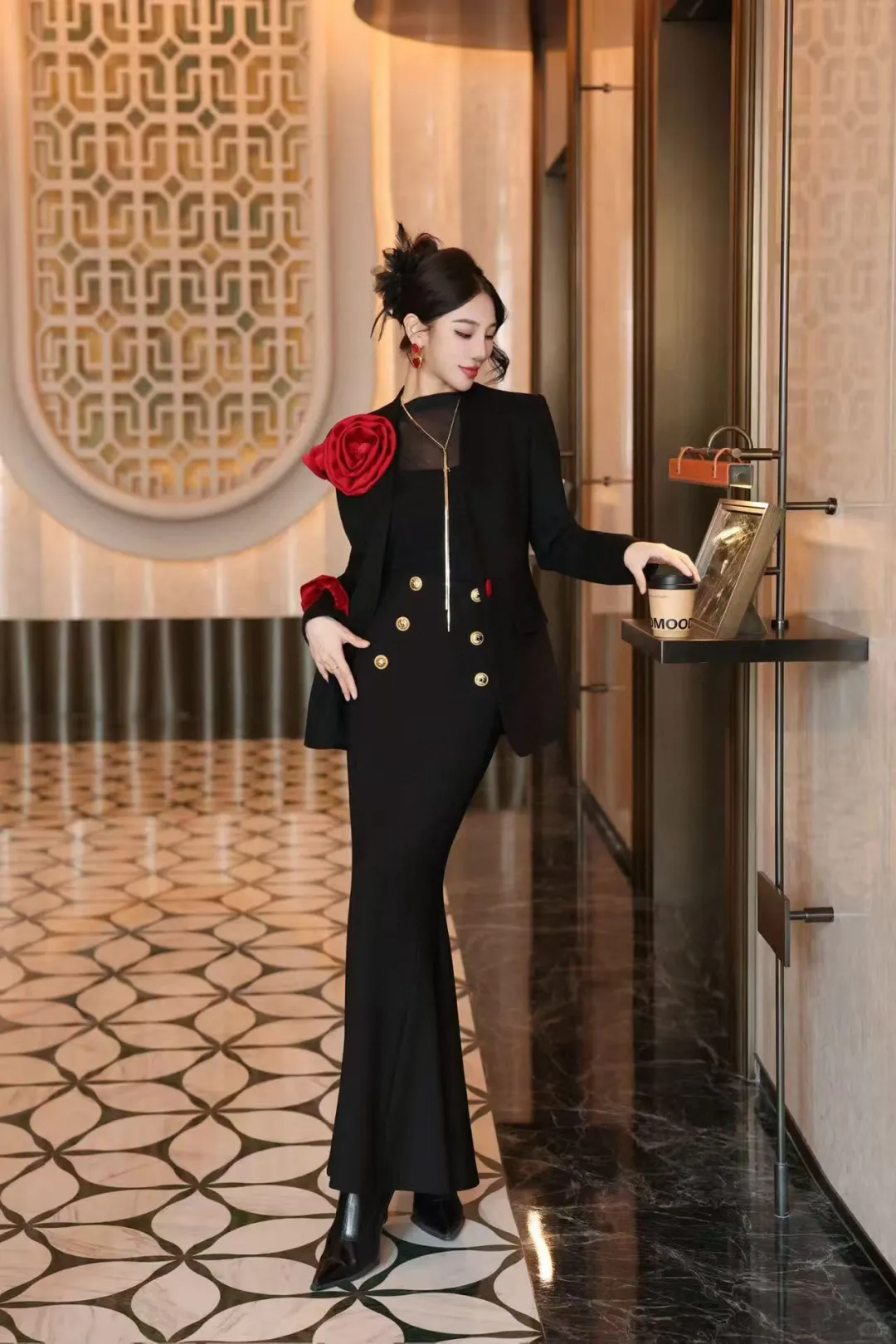 当黑色的高级感撞上玫瑰的热烈,当西装的干练糅合鱼尾裙的妩媚,我才懂什么叫“一眼沦陷,再穿封神”。