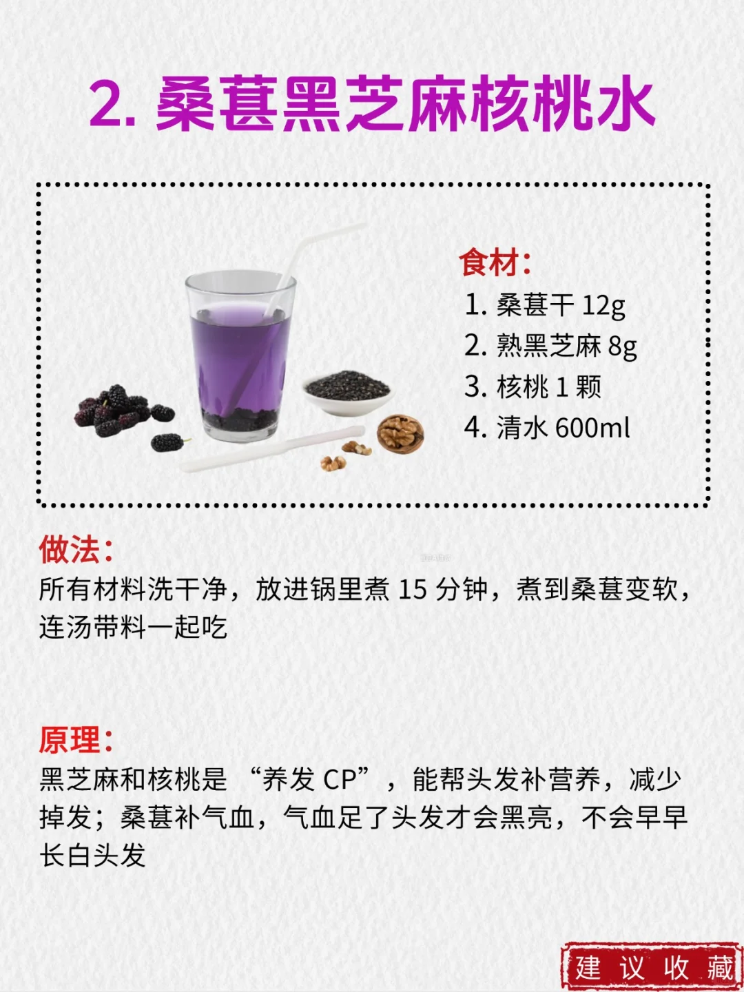 2️⃣桑葚黑芝麻核桃水