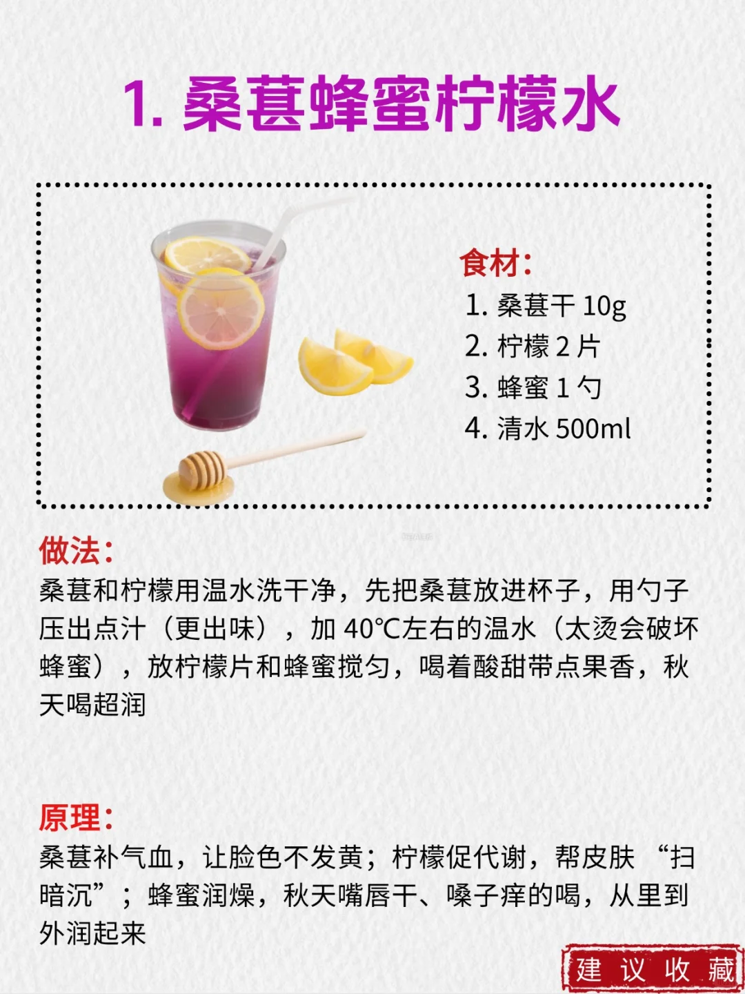 1️⃣桑葚蜂蜜柠檬水