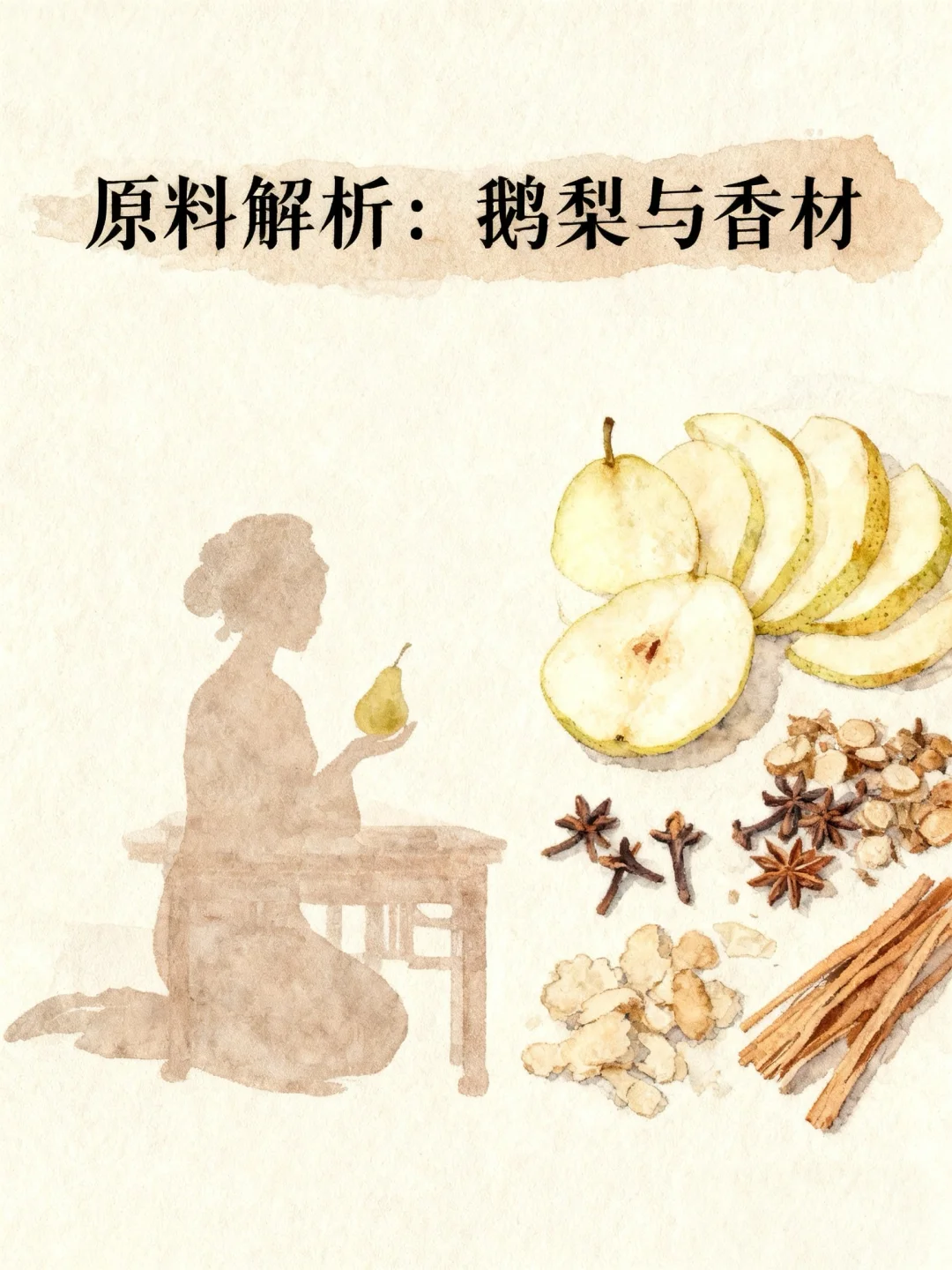主角 - 鹅梨: 不是天鹅的梨,是一种皮薄多汁、香气清甜的青梨(或榲桲,一种类似梨子的水果)。