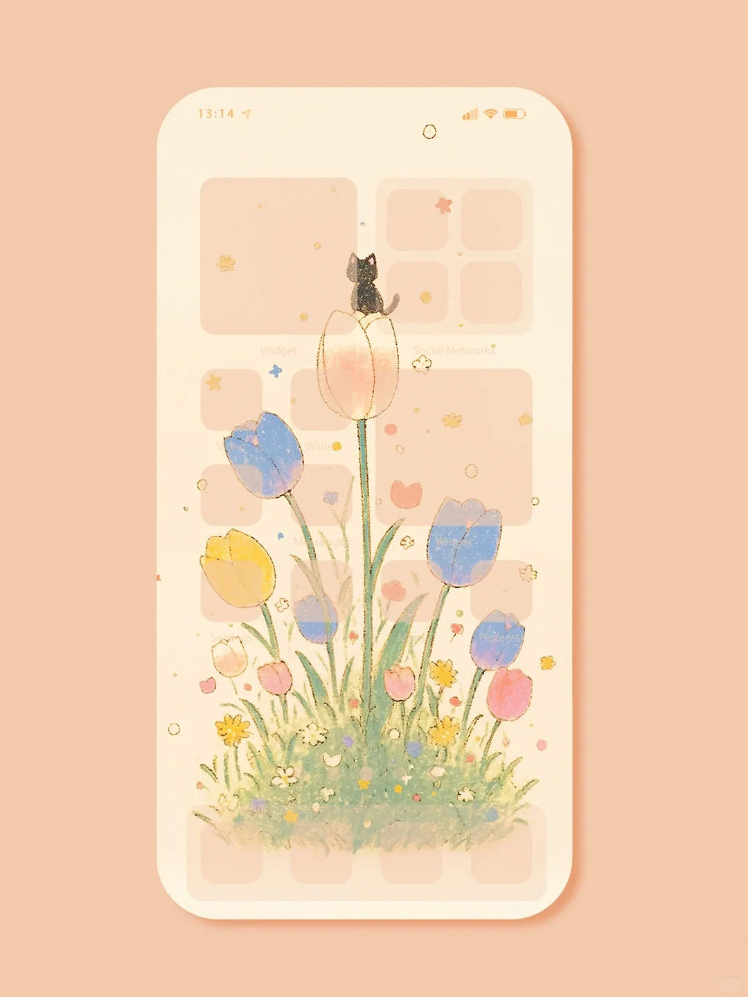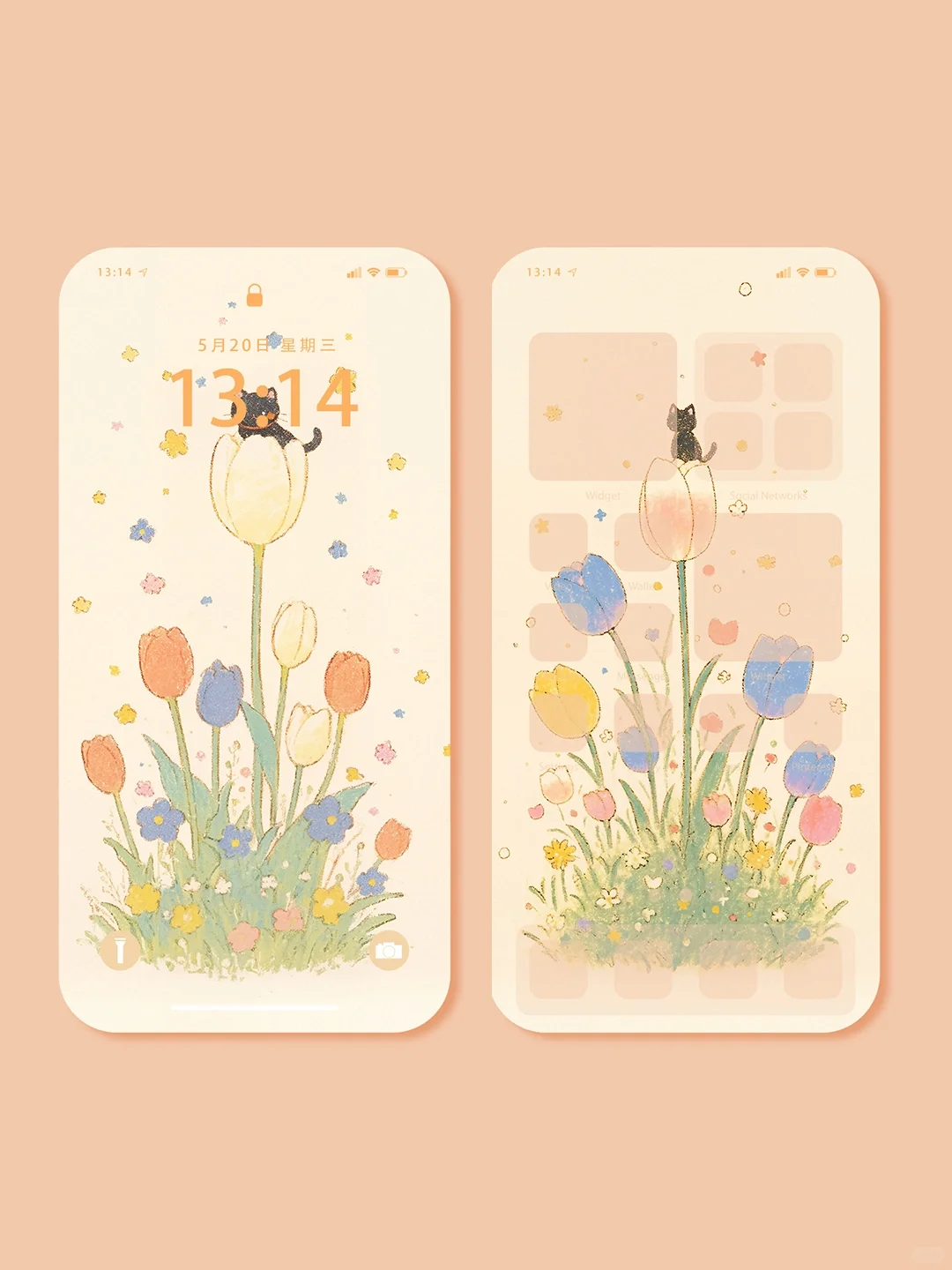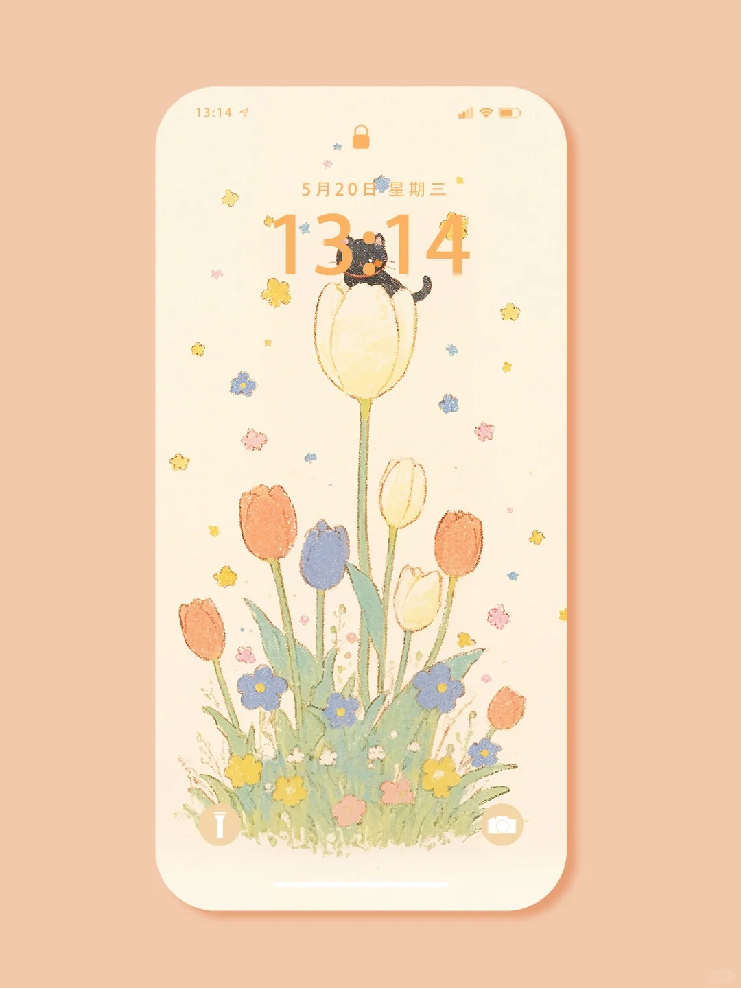 郁金香上的小黑喵|手机壁纸|#304