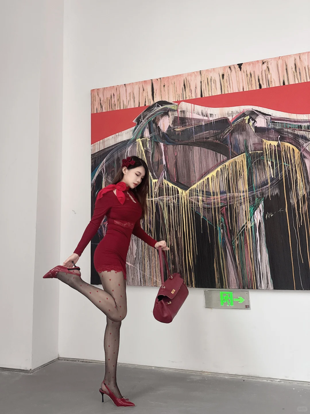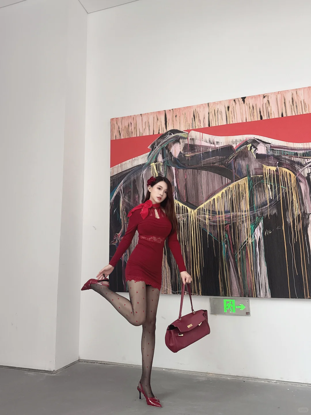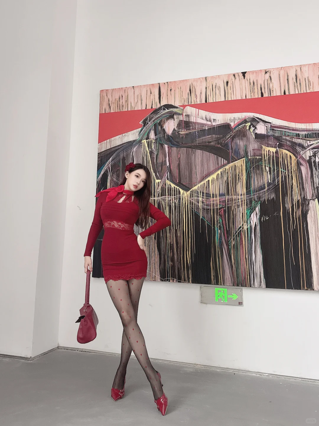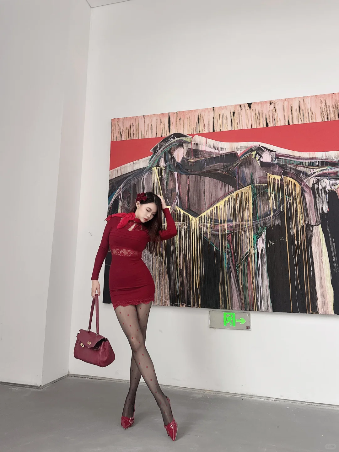 红色蕾丝裙/红色高跟鞋👠:甜辣姐姐风