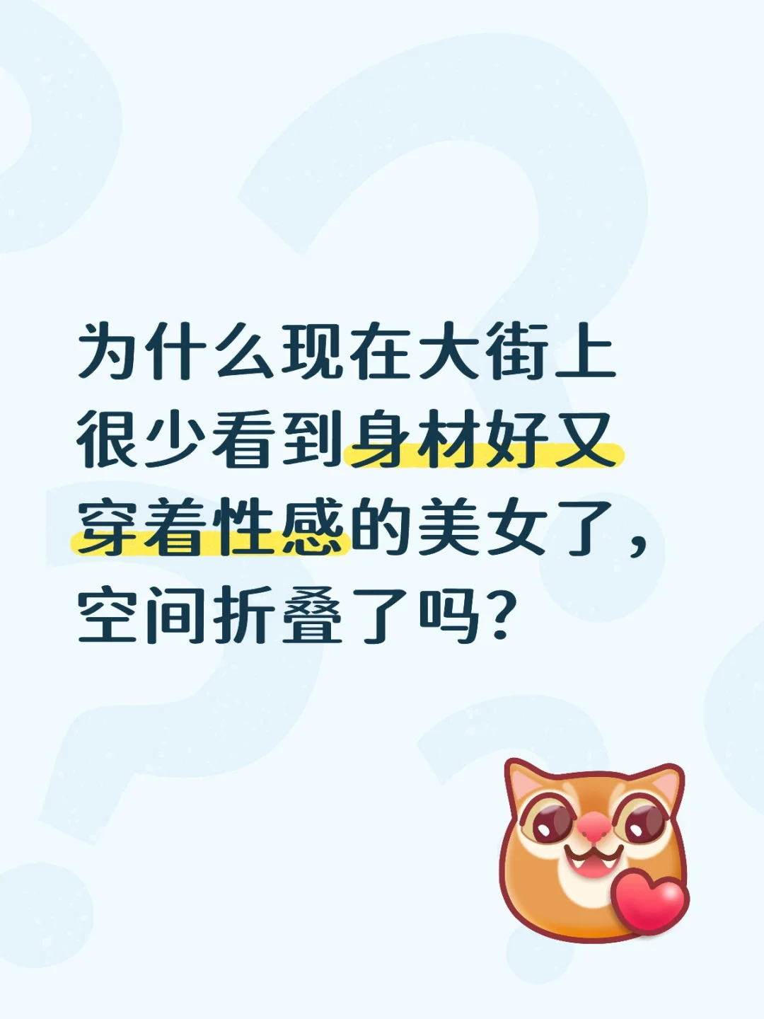 为什么现在大街上很少看到身材好又穿着性感的美女了,空间折叠了吗?