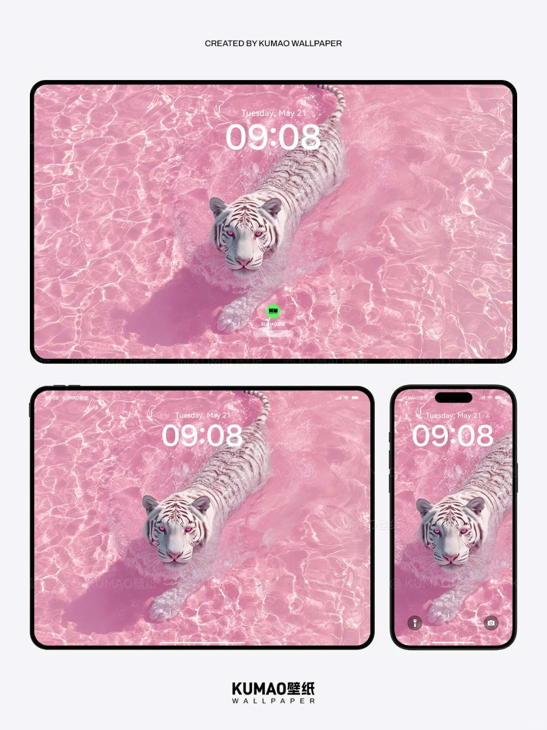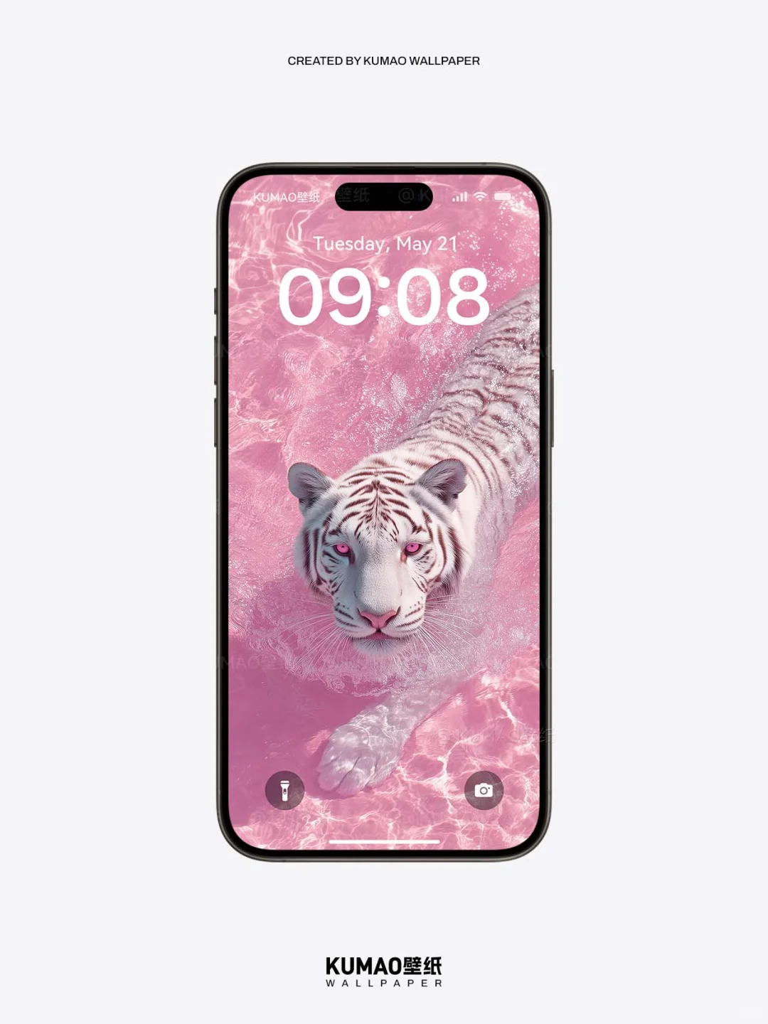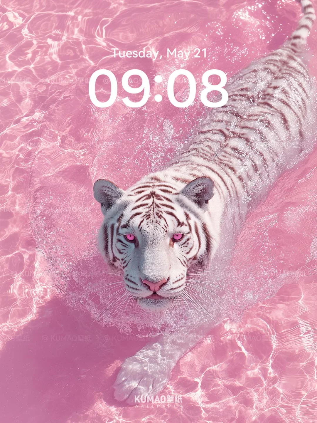 粉波虎影|梦幻粉水中的甜野白虎|老虎壁纸
