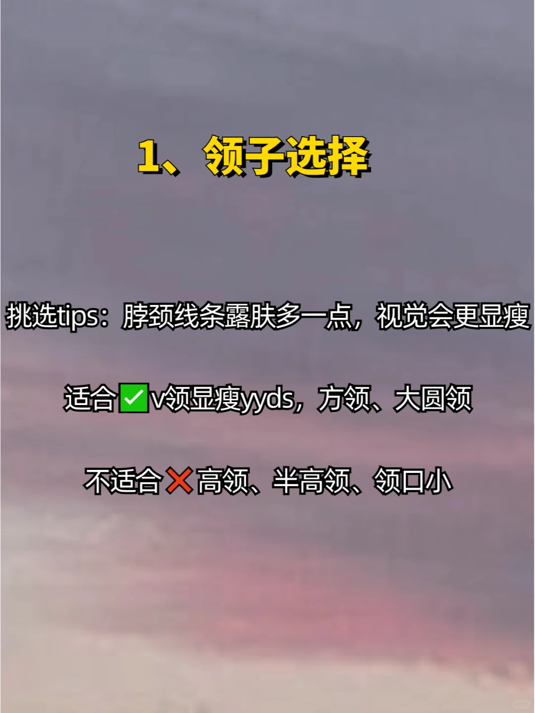 1、领子选择,脖颈线条露肤多一点,视觉显瘦