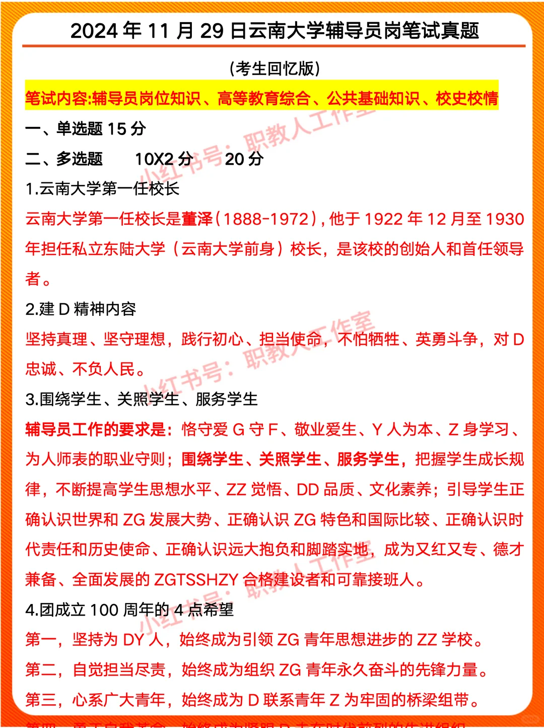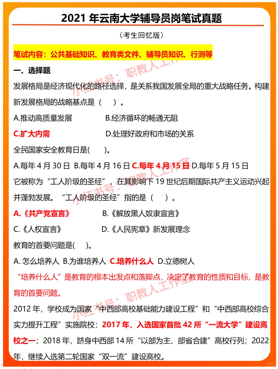 2021年云南大学辅导员招聘笔试真题