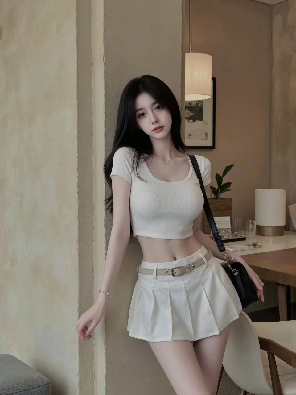 😍 白色短款上衣搭配白色百褶裙,简约又高级!