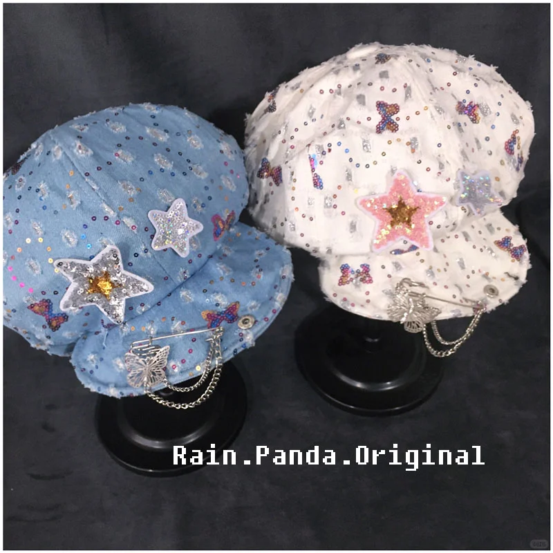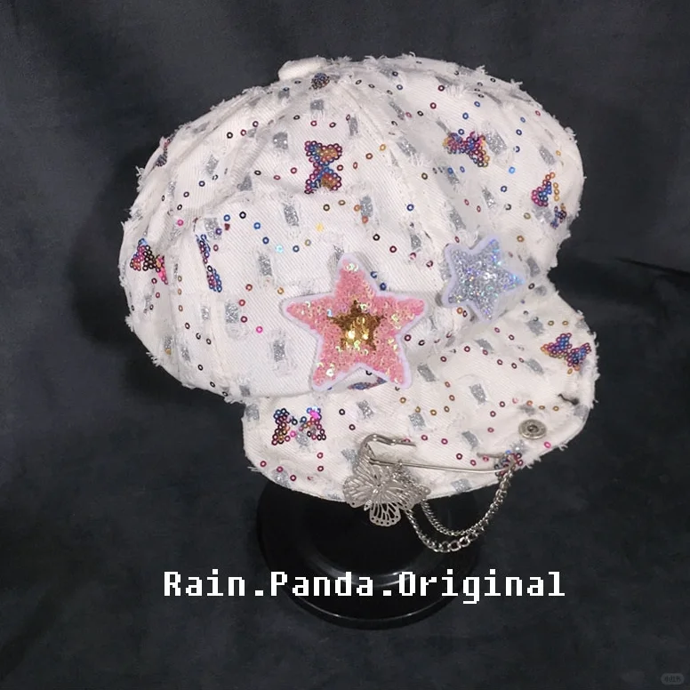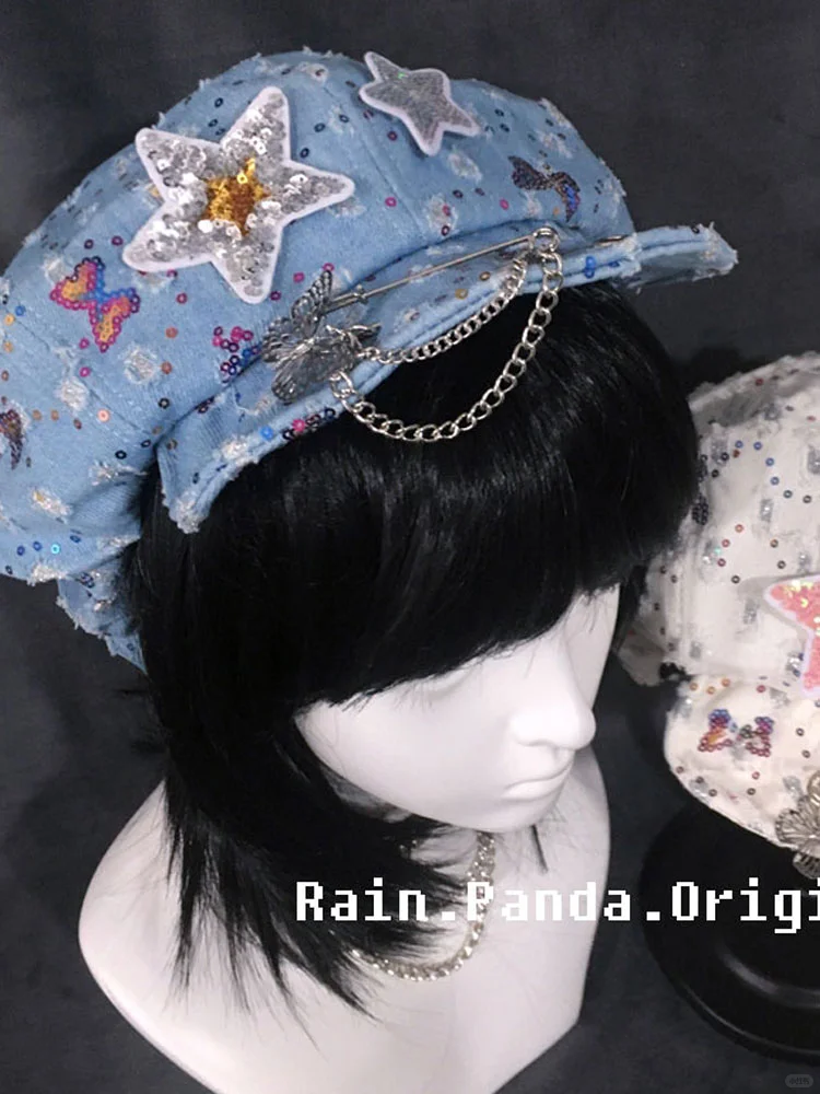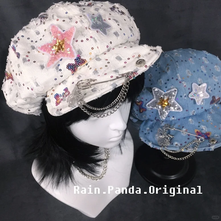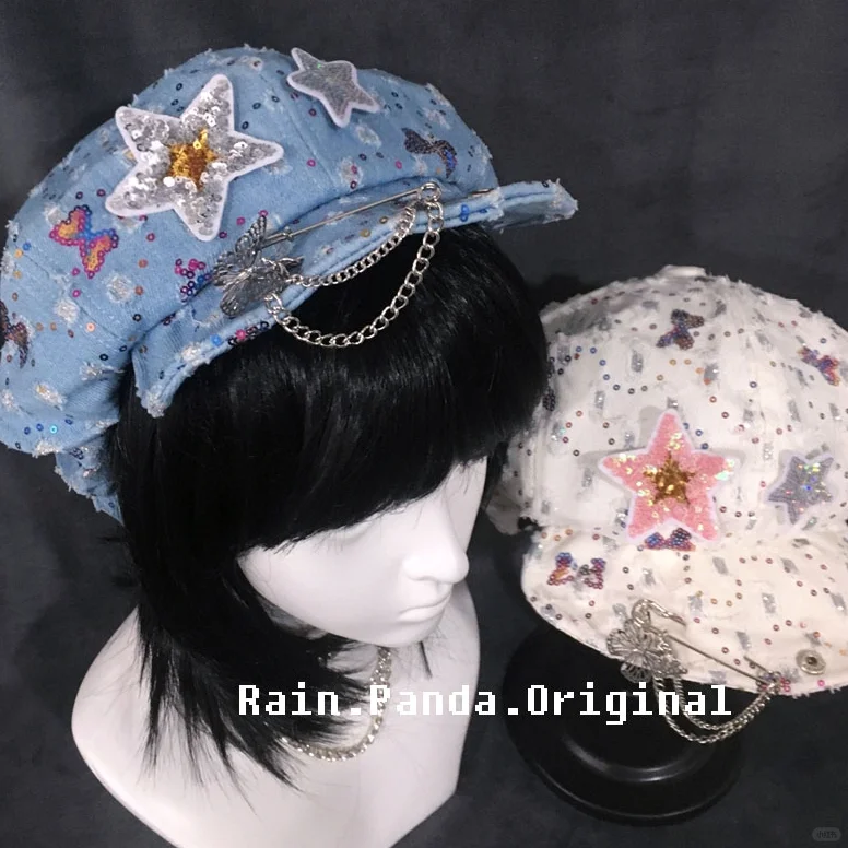 自制星星贝雷帽女y2k复古辣妹鸭舌云朵帽