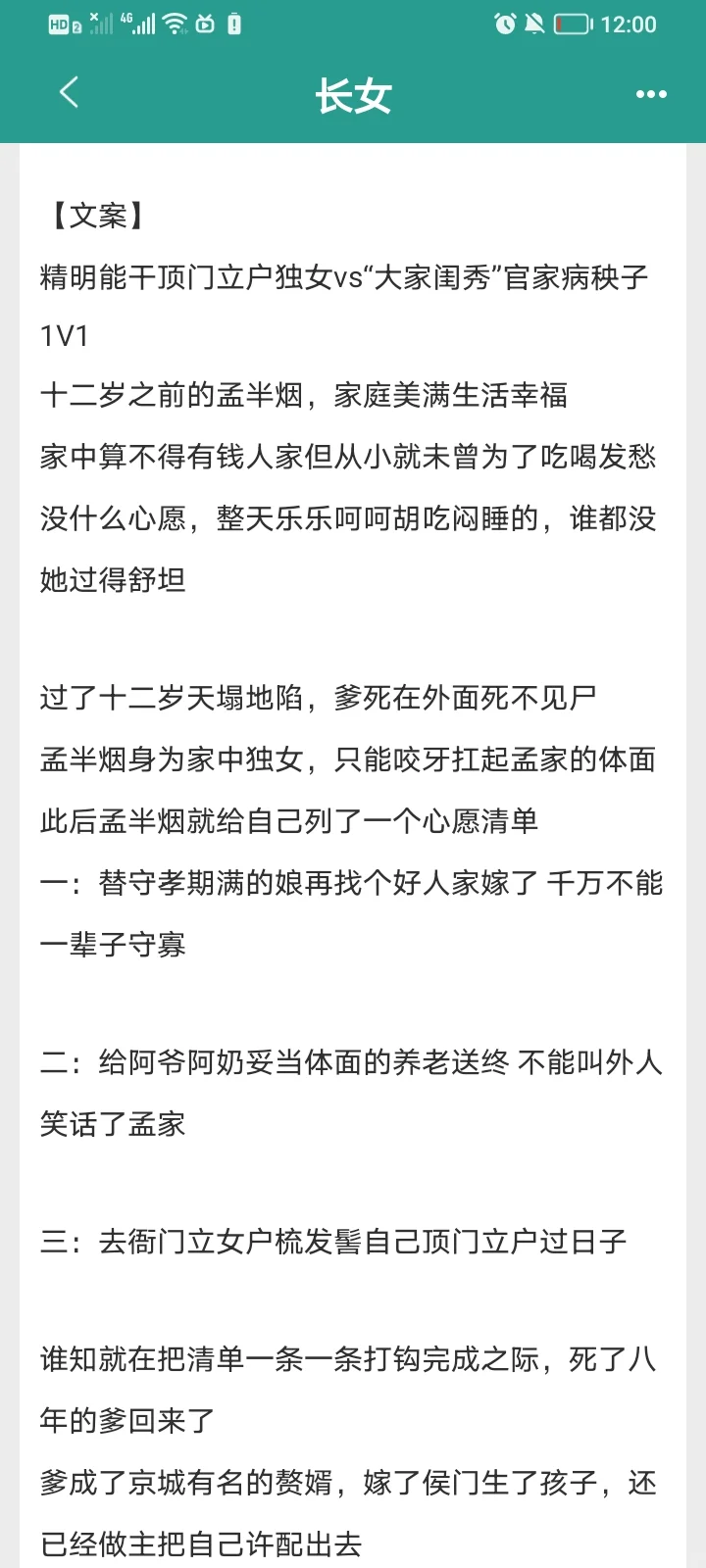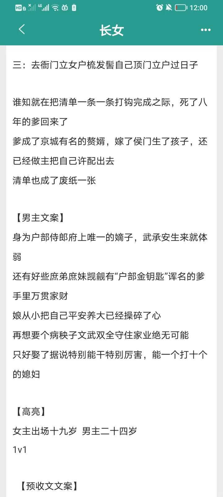 女主家是商户,她是家中独女,十二岁那年她爹外出,掉下山失踪了,女主家族老就想吃绝户,霸占家产。但是女主不同意,她就自己学着做生意,把家产牢牢攥在手里。