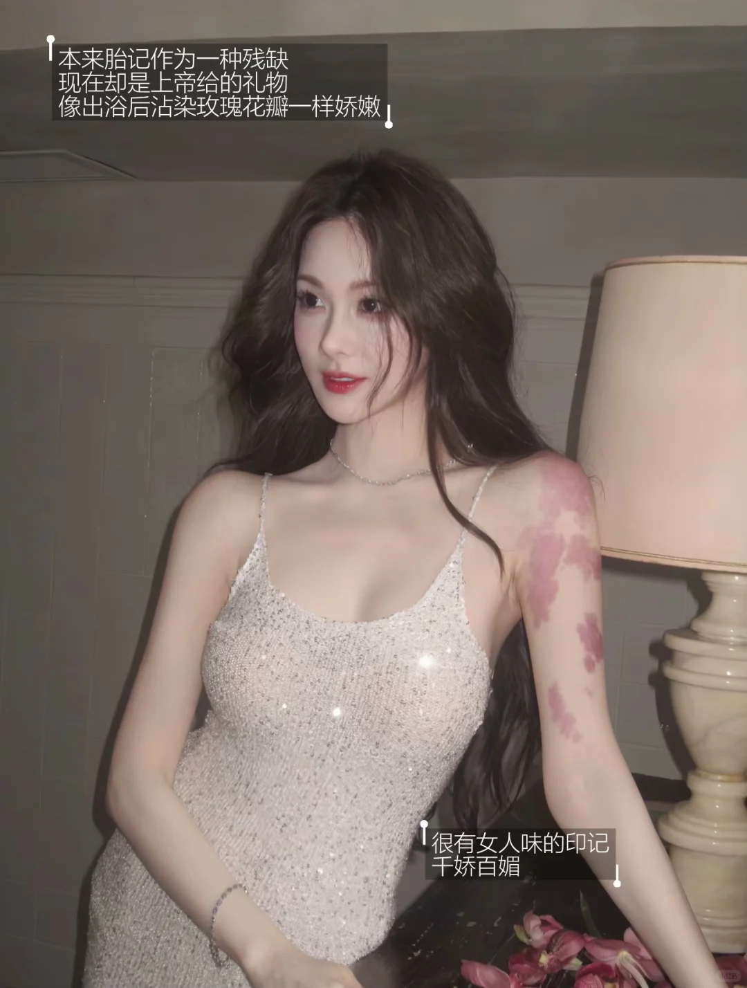 本来胎记作为一种残缺 现在却是上帝给的礼物 ,如出浴后沾染玫瑰花瓣一样娇嫩