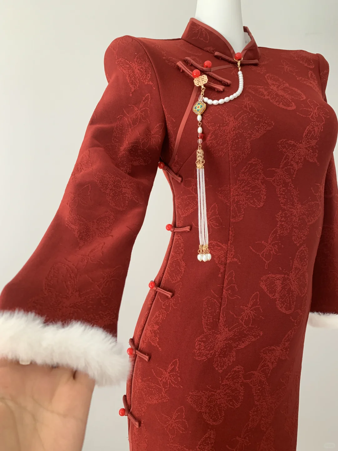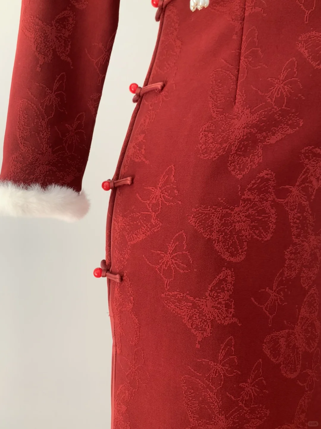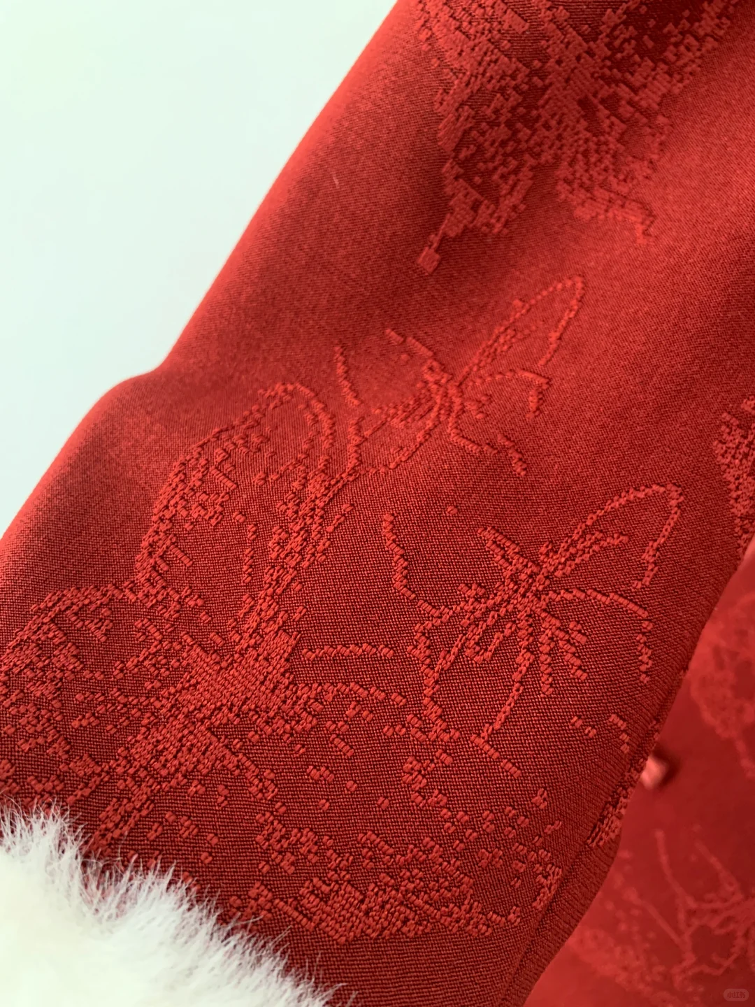 面料上的暗花纹蝴蝶很有特色,关键有弹力里面能加衣服,一点都不会臃肿!!!