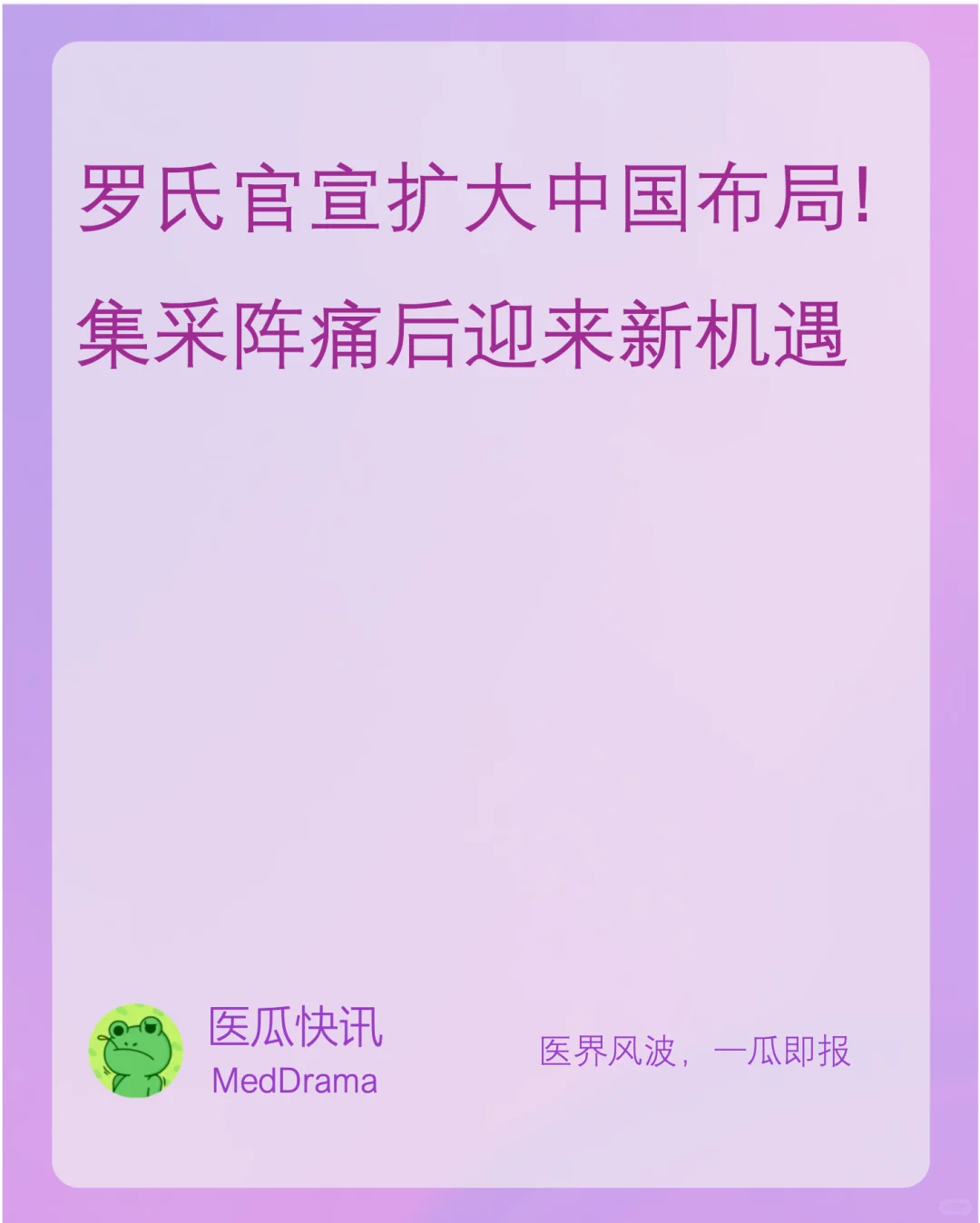 罗氏官宣扩大中国布局!集采阵痛迎来新机遇