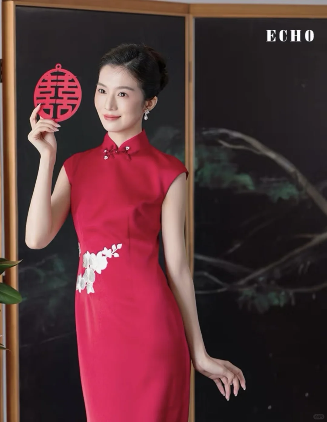 echoofficial新中式旗袍「蝴蝶兰」新娘红色订婚敬酒礼服,只穿过一上午,出有缘人