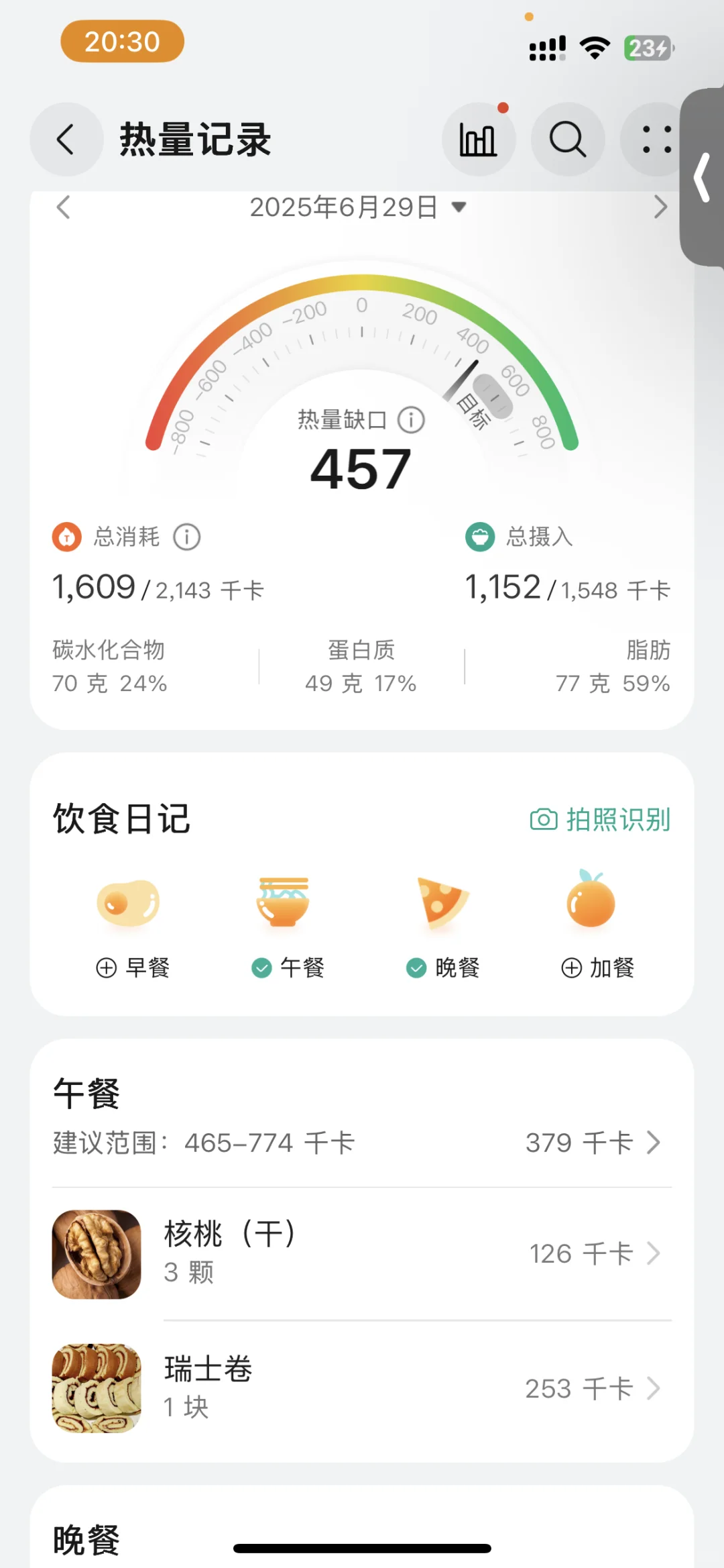 摄入:1152千卡| 消耗:1609千卡