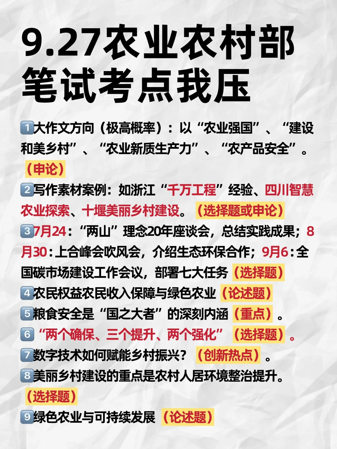 不算我泄题吧?农业农村部今年是蕞简单一年