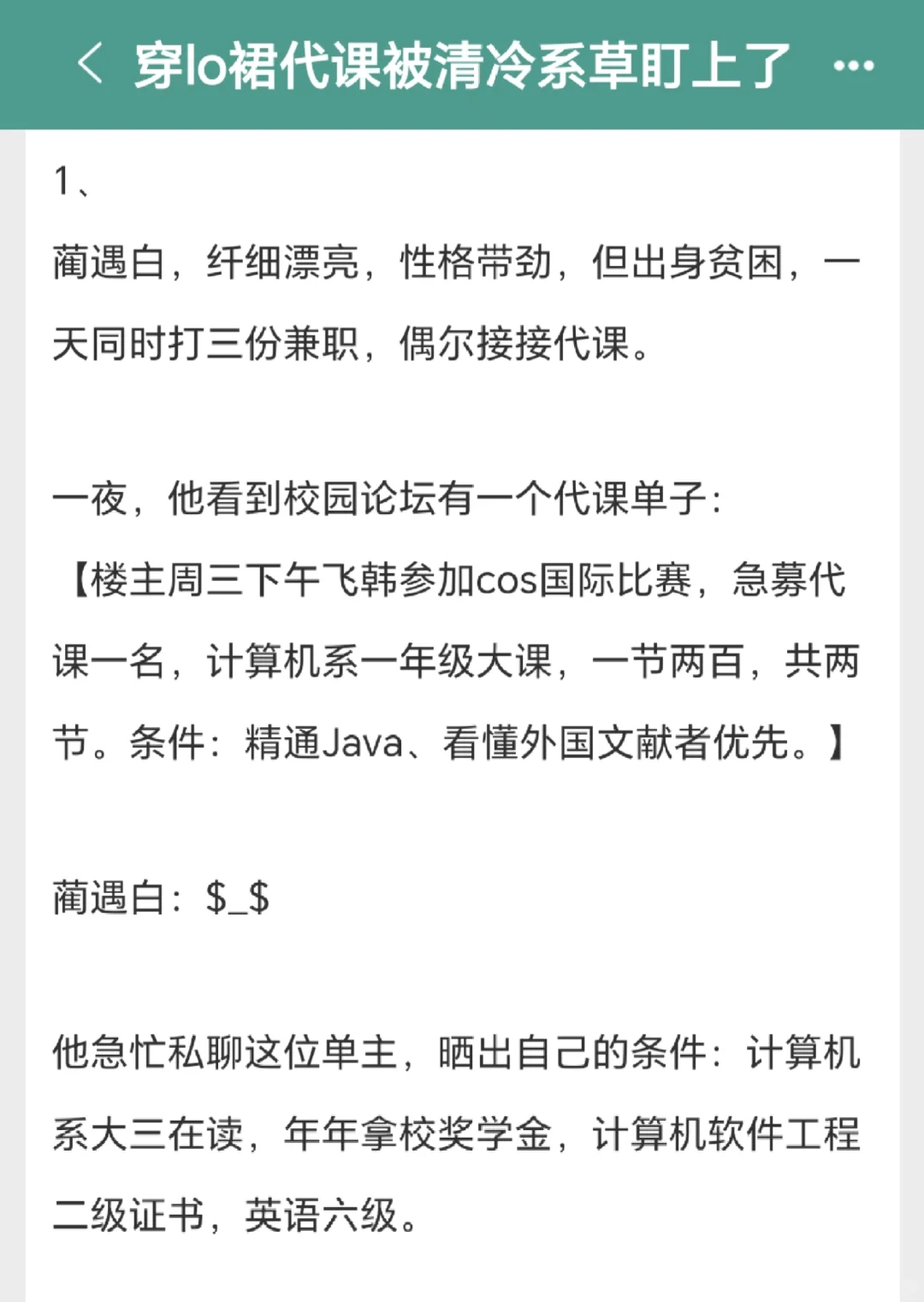 财迷小美人为了赚钱穿女装钓到清冷校草