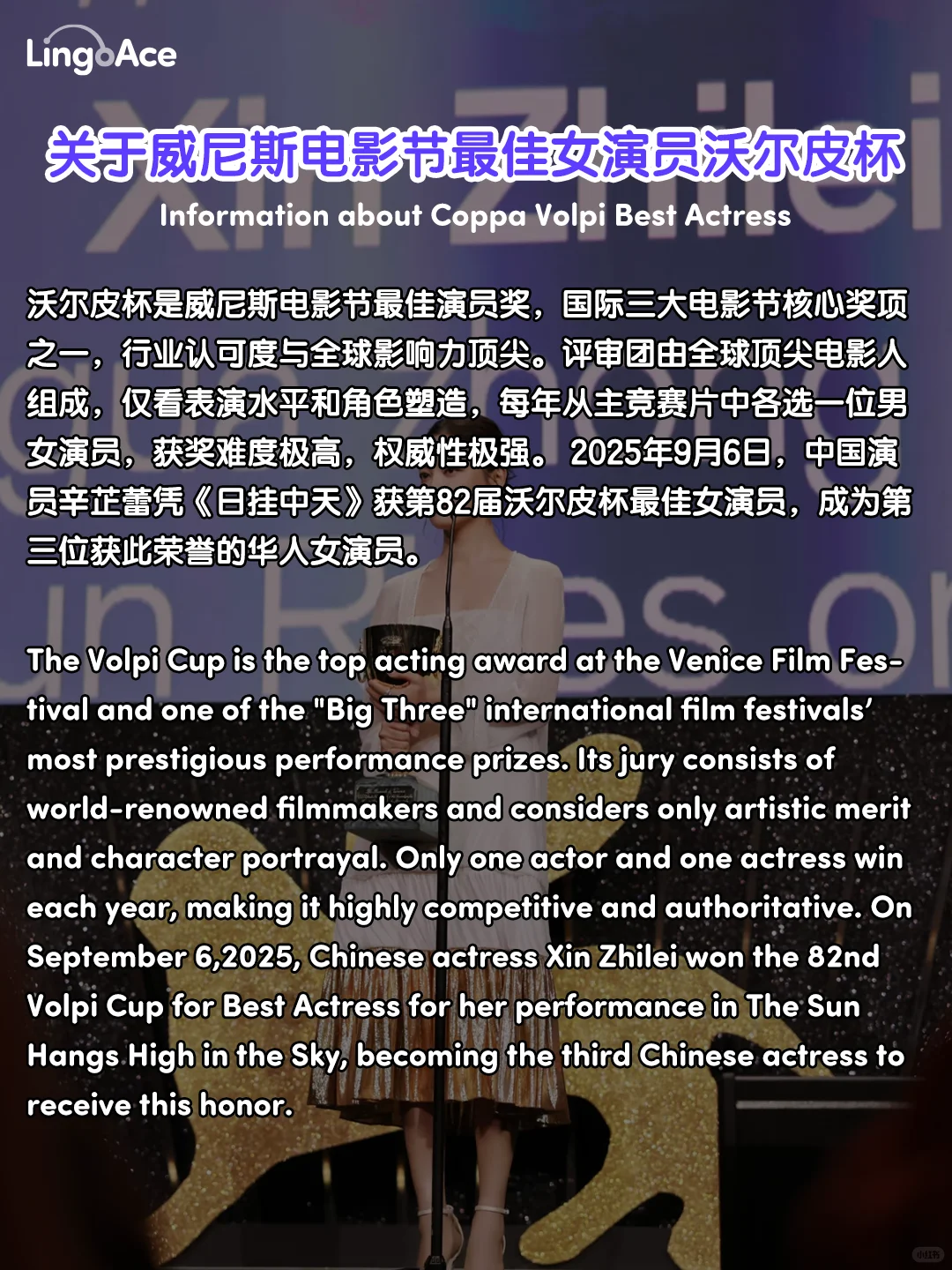 #辛芷蕾 #威尼斯电影节 #沃尔皮杯 #英语学习 #lingoAce #lingoAce卓越英语 #英语干货 #英语短文