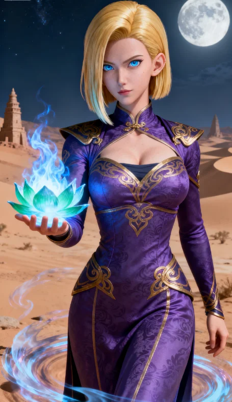 设计思路: 融合美杜莎的冷艳与萧薰儿的圣洁,赋予其标志性的异火能力,金发碧眼在异火映照下更具视觉冲击力。
