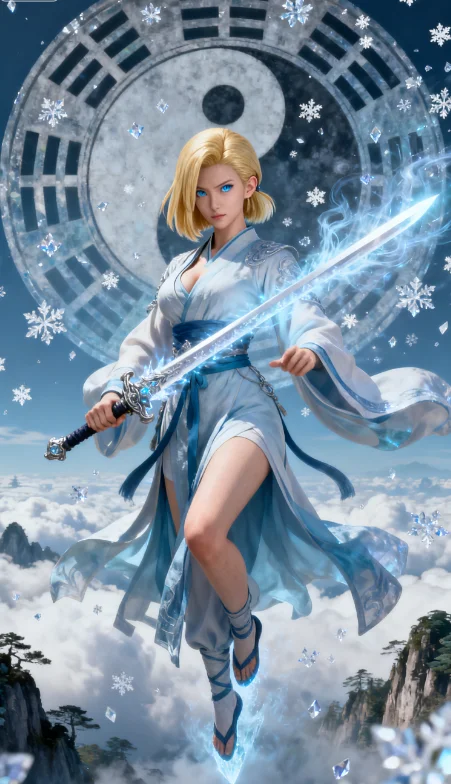 设计思路: 结合陆雪琪的清冷气质与天琊神剑的设定,塑造一个不同于原著的、拥有异域风情的绝世剑仙。