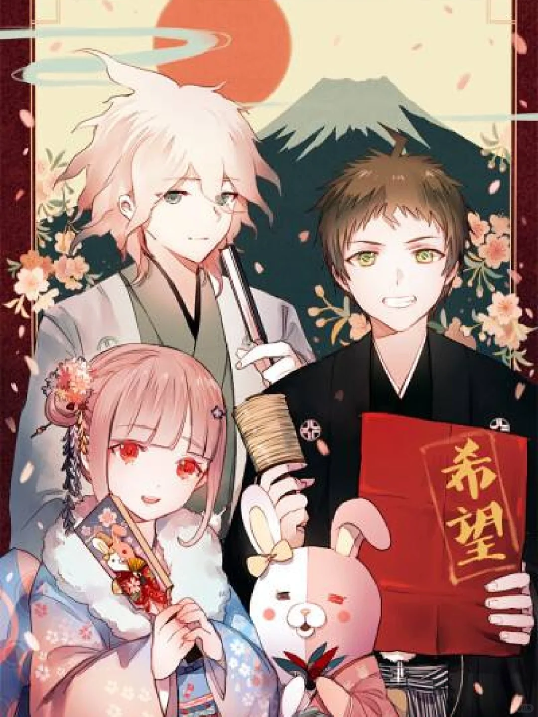 在小吃街上,百田和春川在那边闲逛,“新年快乐,九头龙!”百田对着迎面走来的九头龙和边古山说道,“新年快乐!”九头龙回了一句,“对了,我听说你认识那个打倒黑手党的星龙马?”“对啊,怎么了”“呵,我可是超高校级的黑道,有空叫他来一下”九头龙得意的说道。“好啊”百田答应了。