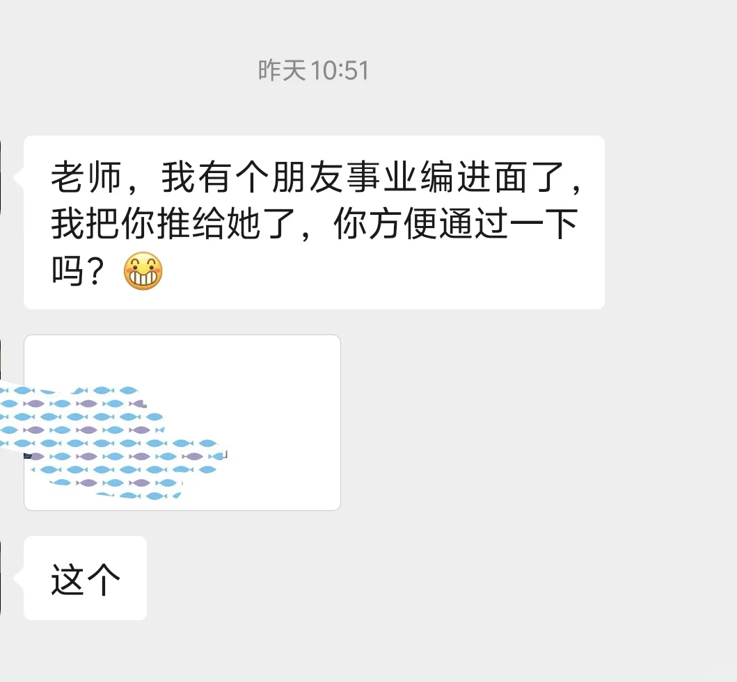 但这不妨碍当她们有朋友有家人进面以后会直接推我的名片过去,不会有过多的安利,只有言简意赅的一句:这老师讲的不错