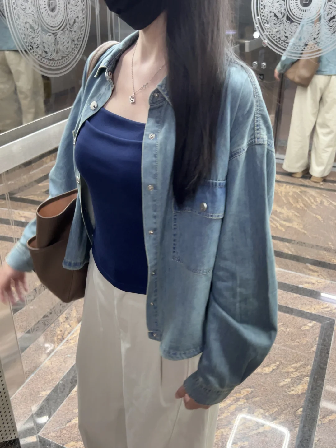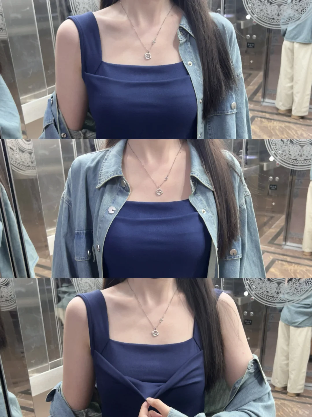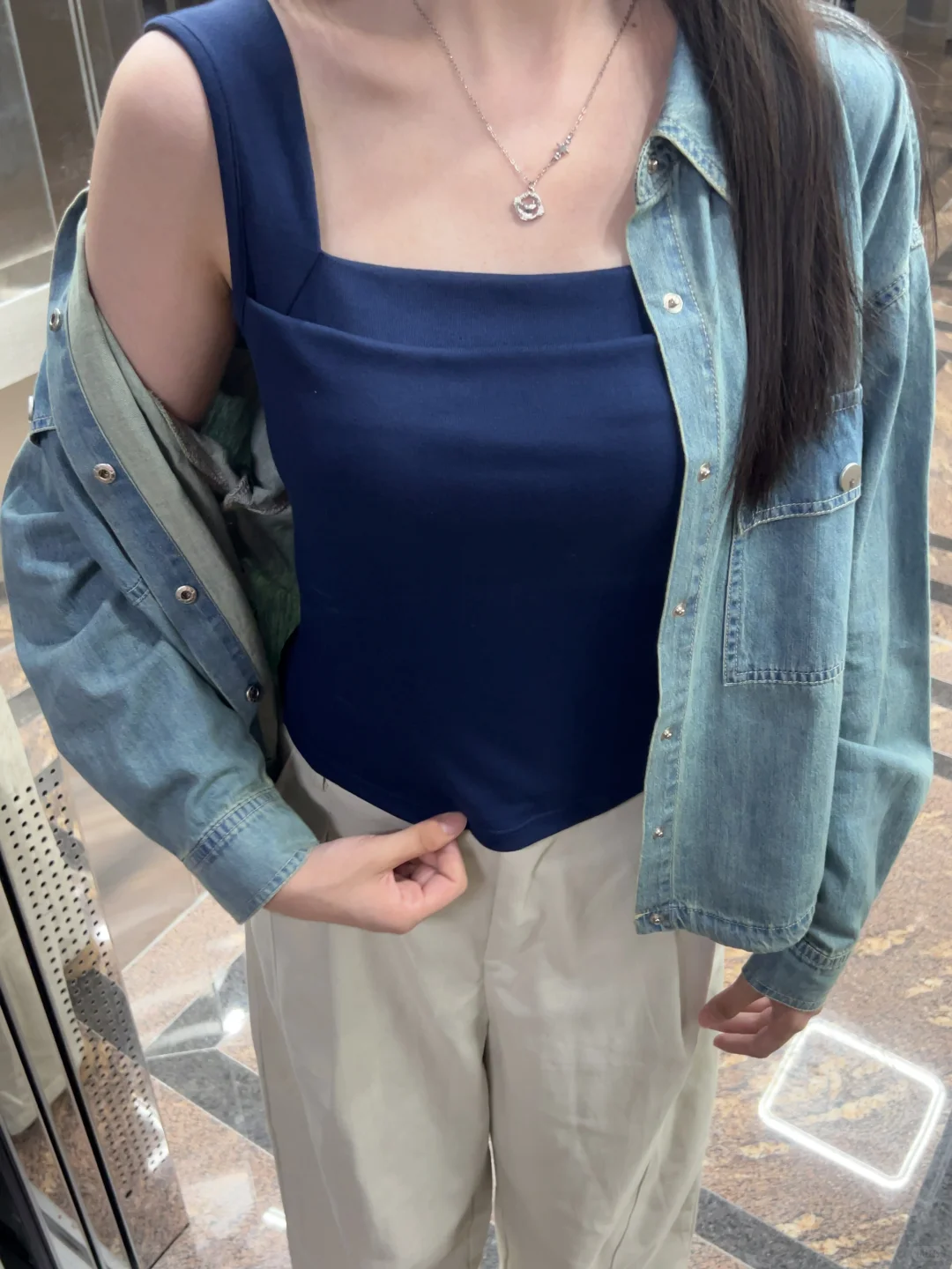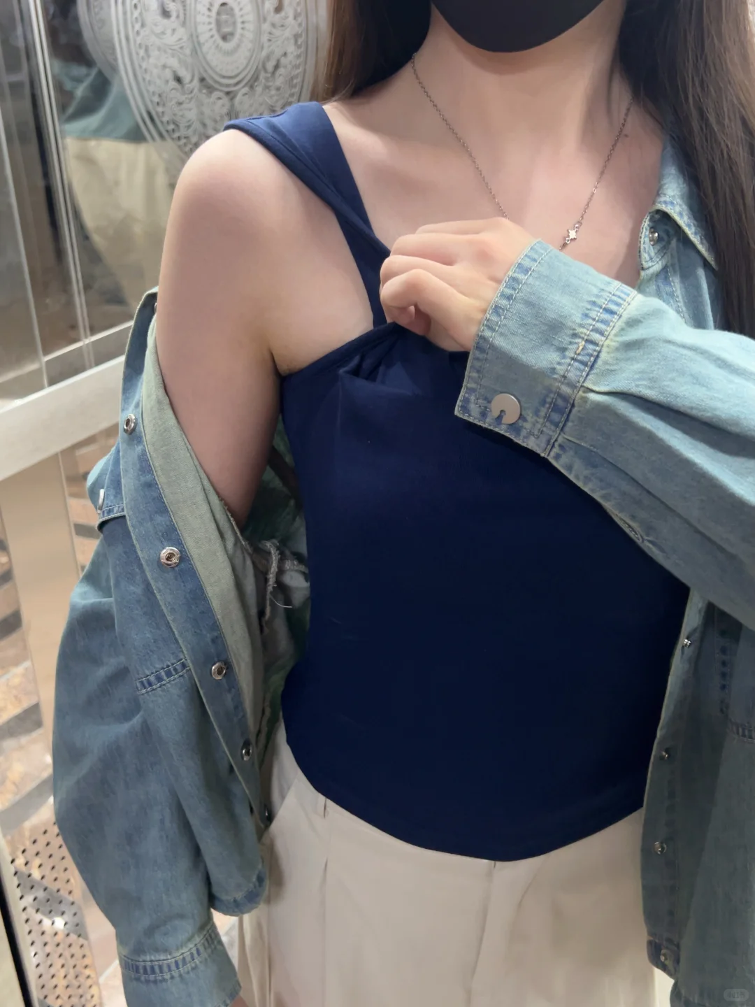 入秋通勤第一次穿藏青色吊带背心,被一路追问!