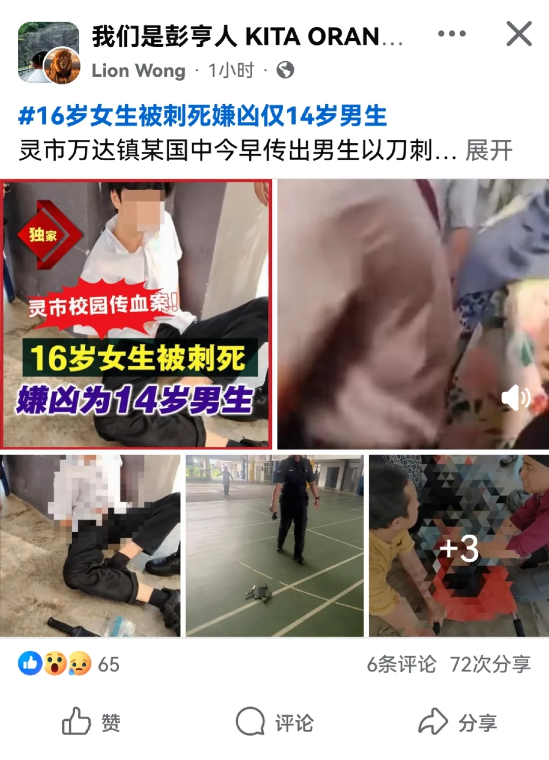 我学校有个男的拿刀砍伤人,我只知道这样罢了,其他的请相信新闻