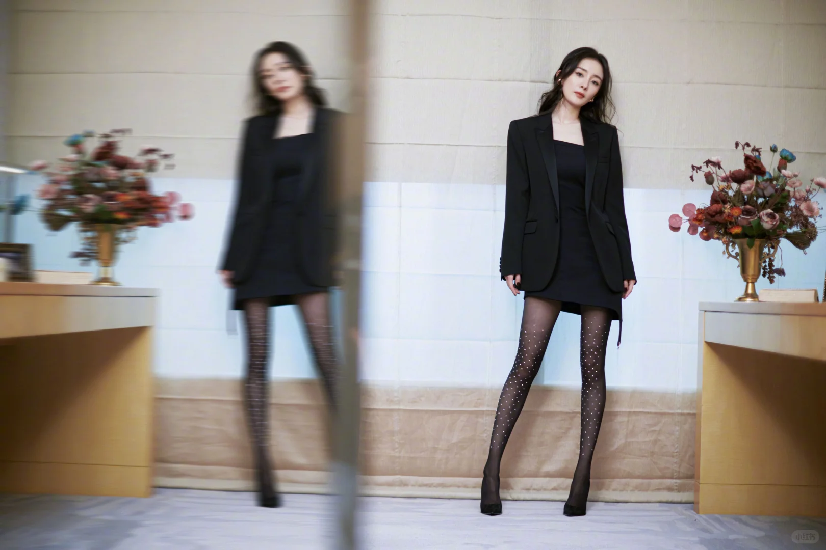 杨幂卡泽意镶钻黑丝穿搭,太魅惑了