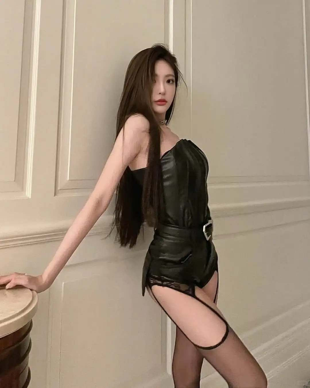 宝子们,在卧室也能轻松拍出时尚感!黑色短上衣搭配闪亮的银色短裤,一整个酷飒又吸睛。