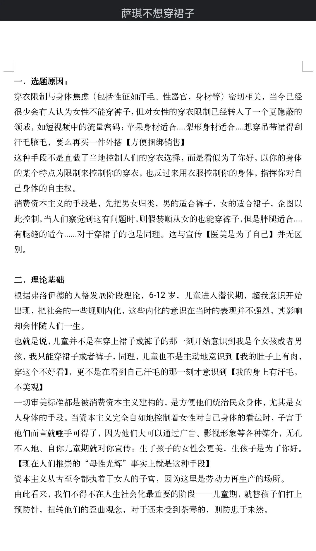 在前两周的课上,我已经了解到【如果你直接问儿童们,那世界上不存在性别歧视。】