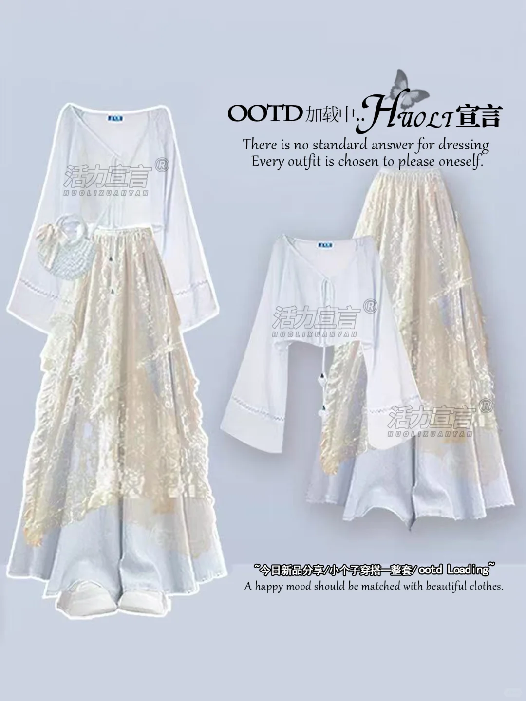 想走仙女风🧚 选蕾丝拼接长裙!裙摆飘飘,在荧光棒光影里转圈圈,仿佛自带追光✨ 还有短上衣+牛仔裙组合,甜酷辣妹既视感,活力满满超应援~