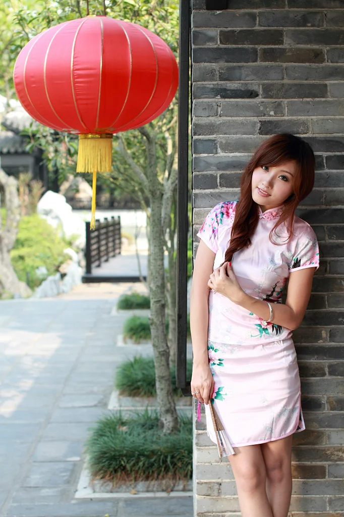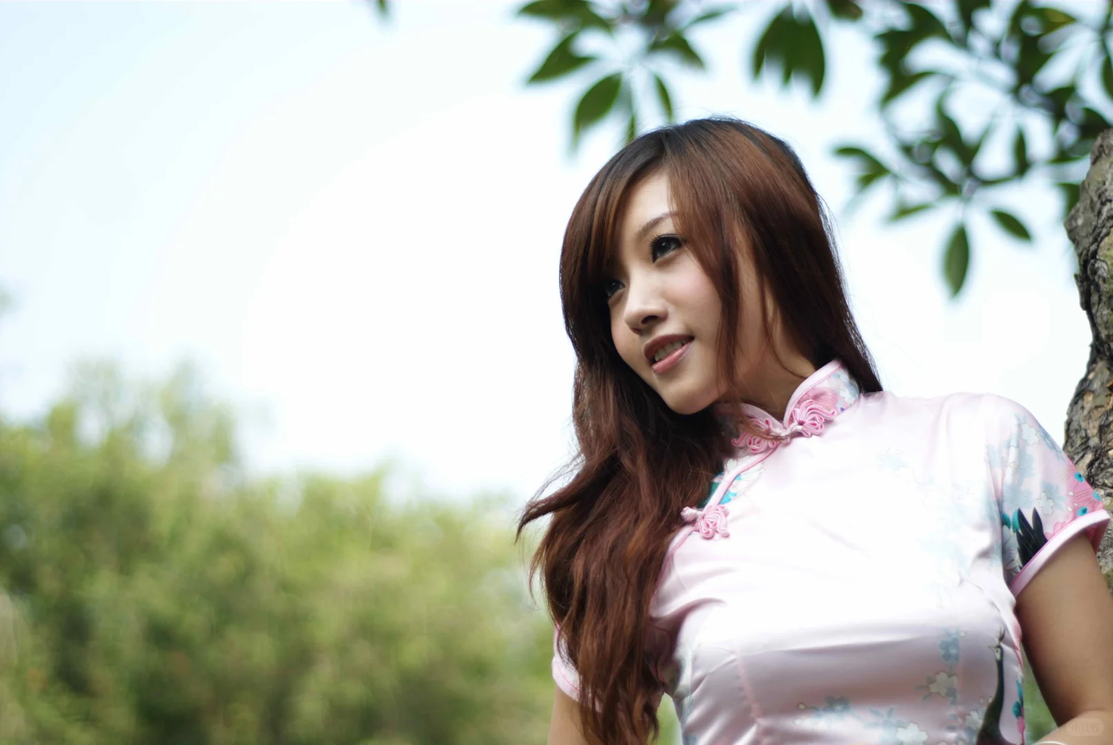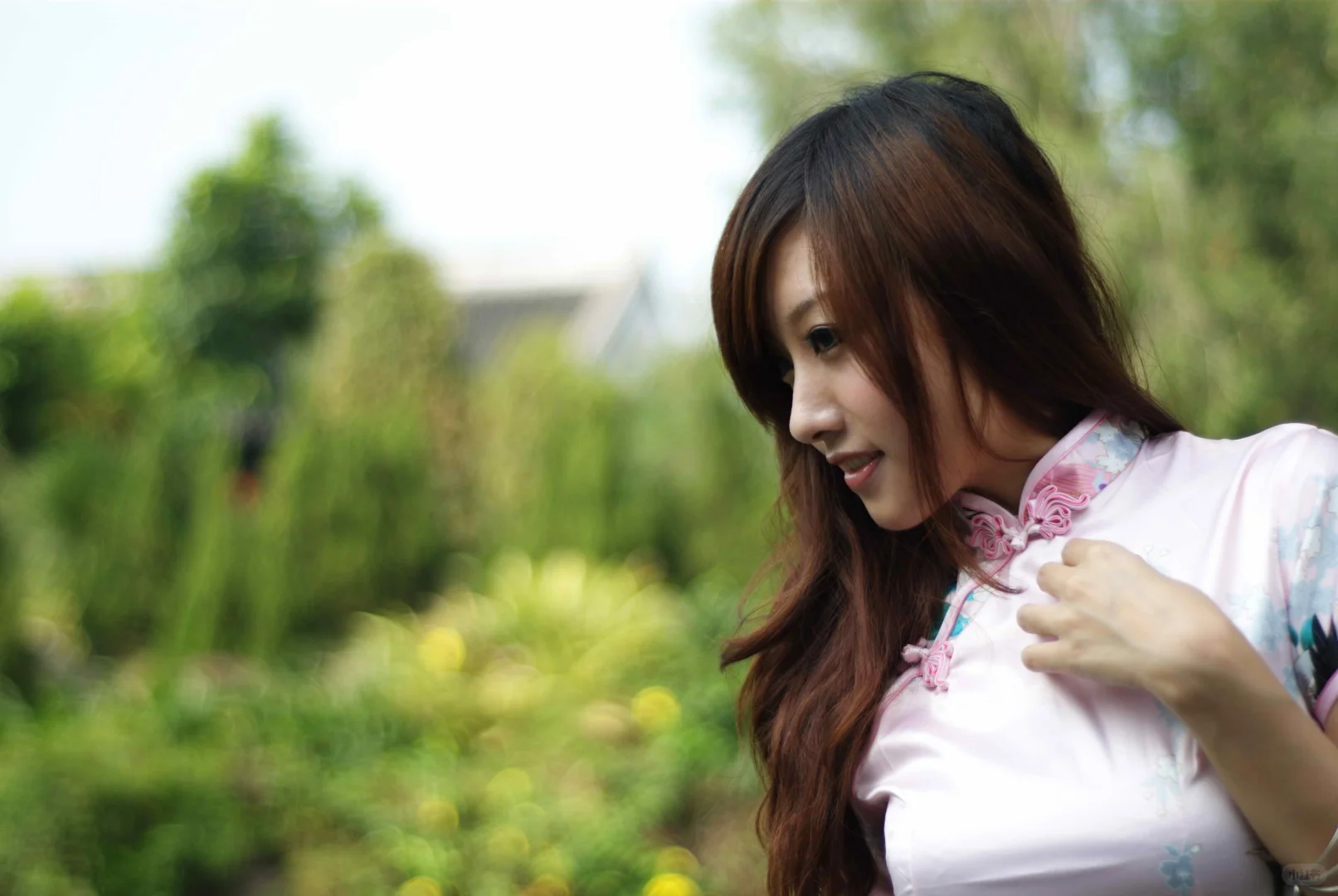 粉红褀袍尽妖娆,前凸后翘美中烧