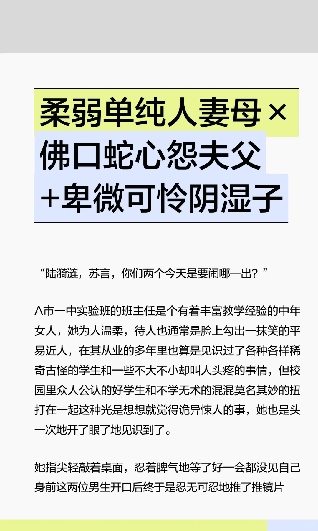 柔弱单纯人妻母×佛口蛇心怨夫父+卑微可怜阴