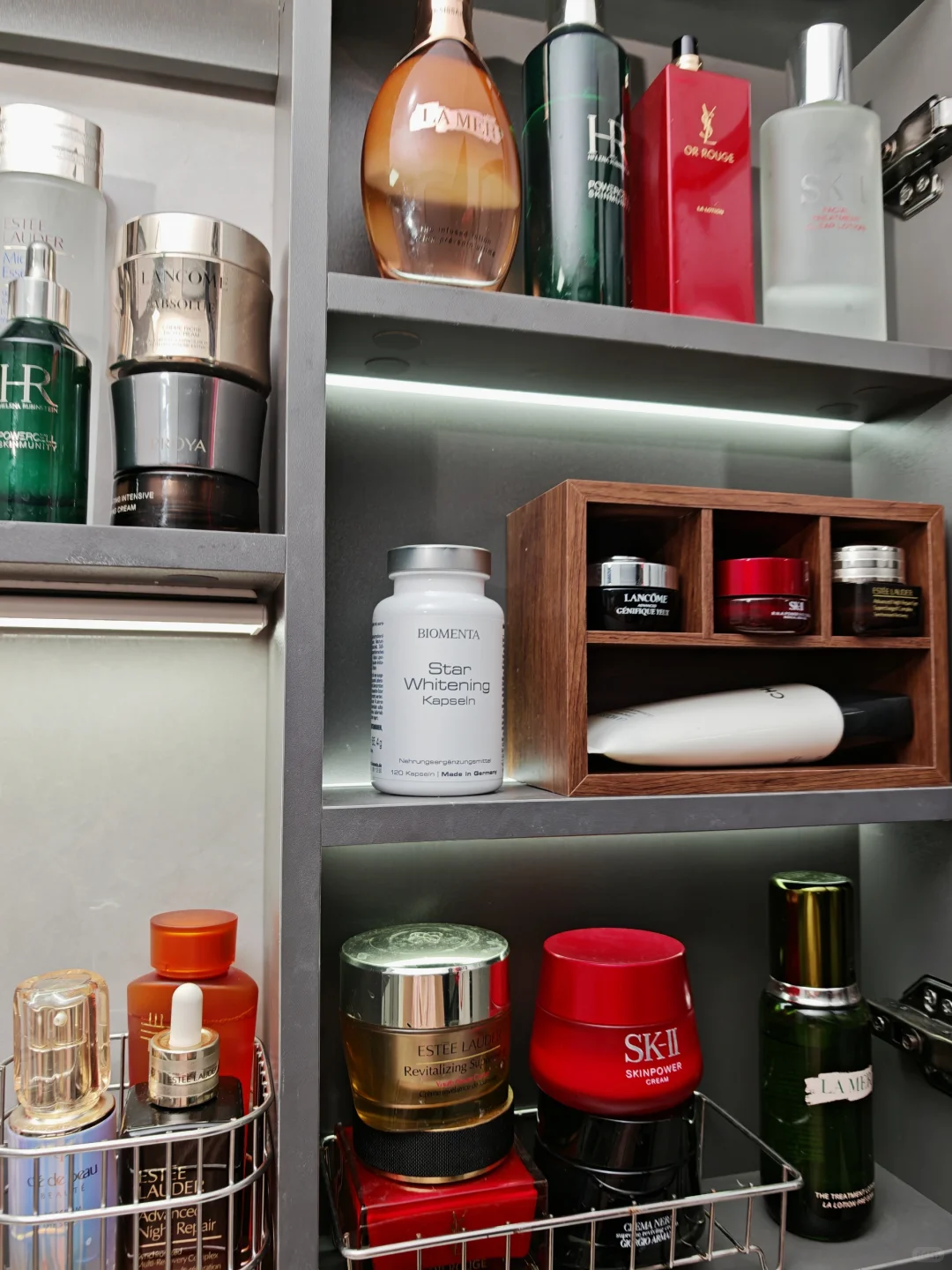 我的梳妆台如流水线般住着上千瓶护肤产品