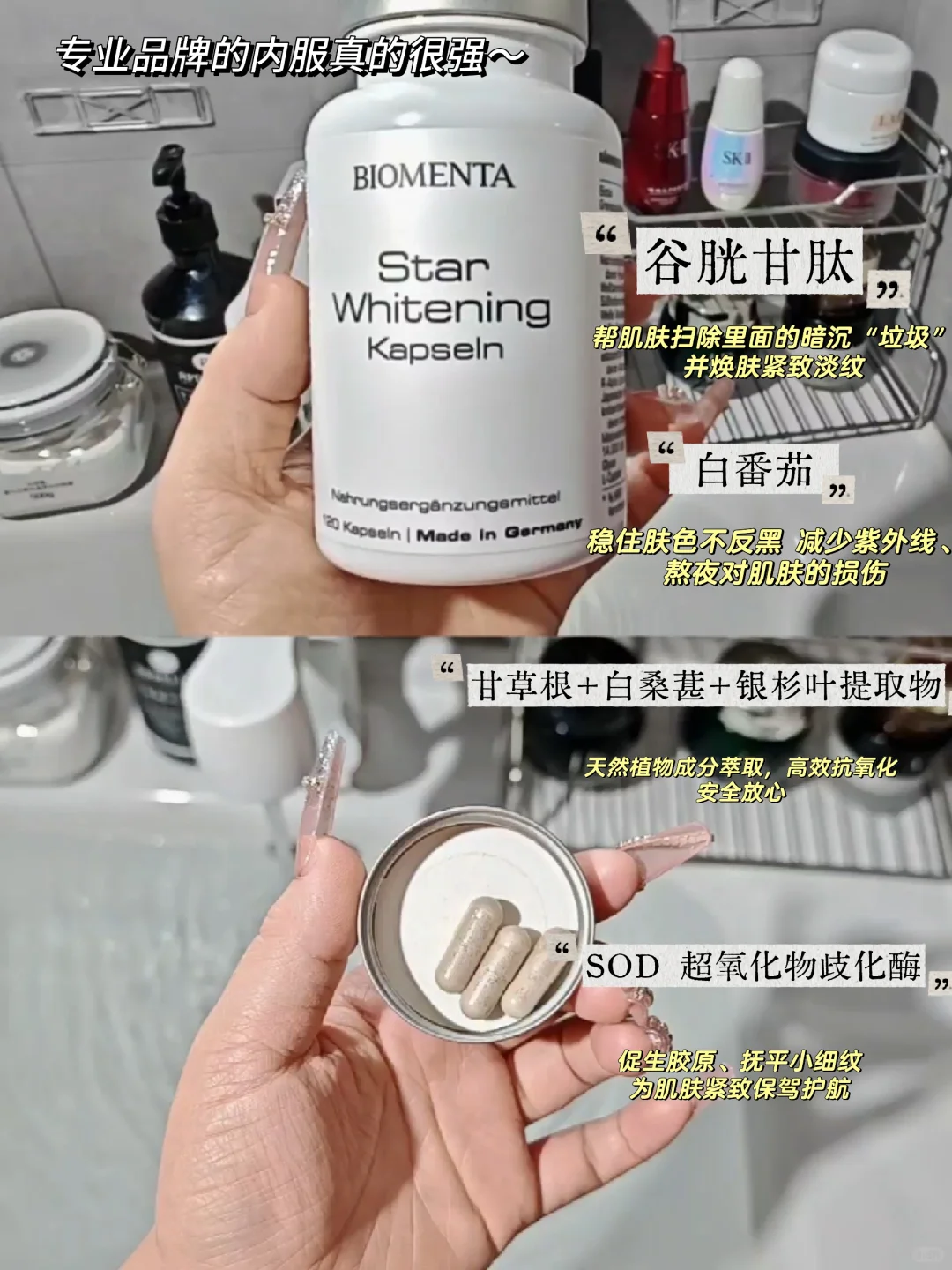 经过无数次尝试,我锁定了一个德国留学的朋友给我推荐的🔍BIOMENTA雪肤靓颜胶囊,这是当地经营了30多年的老企业,德国工艺没的说! 👍🏻