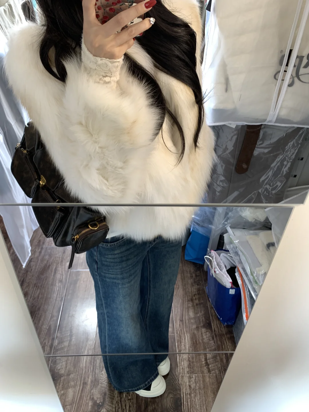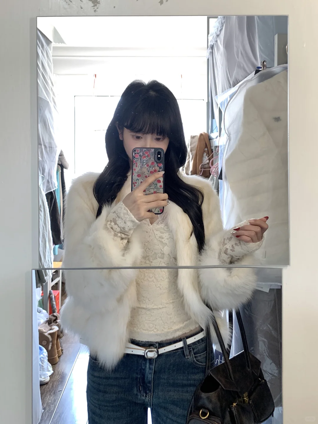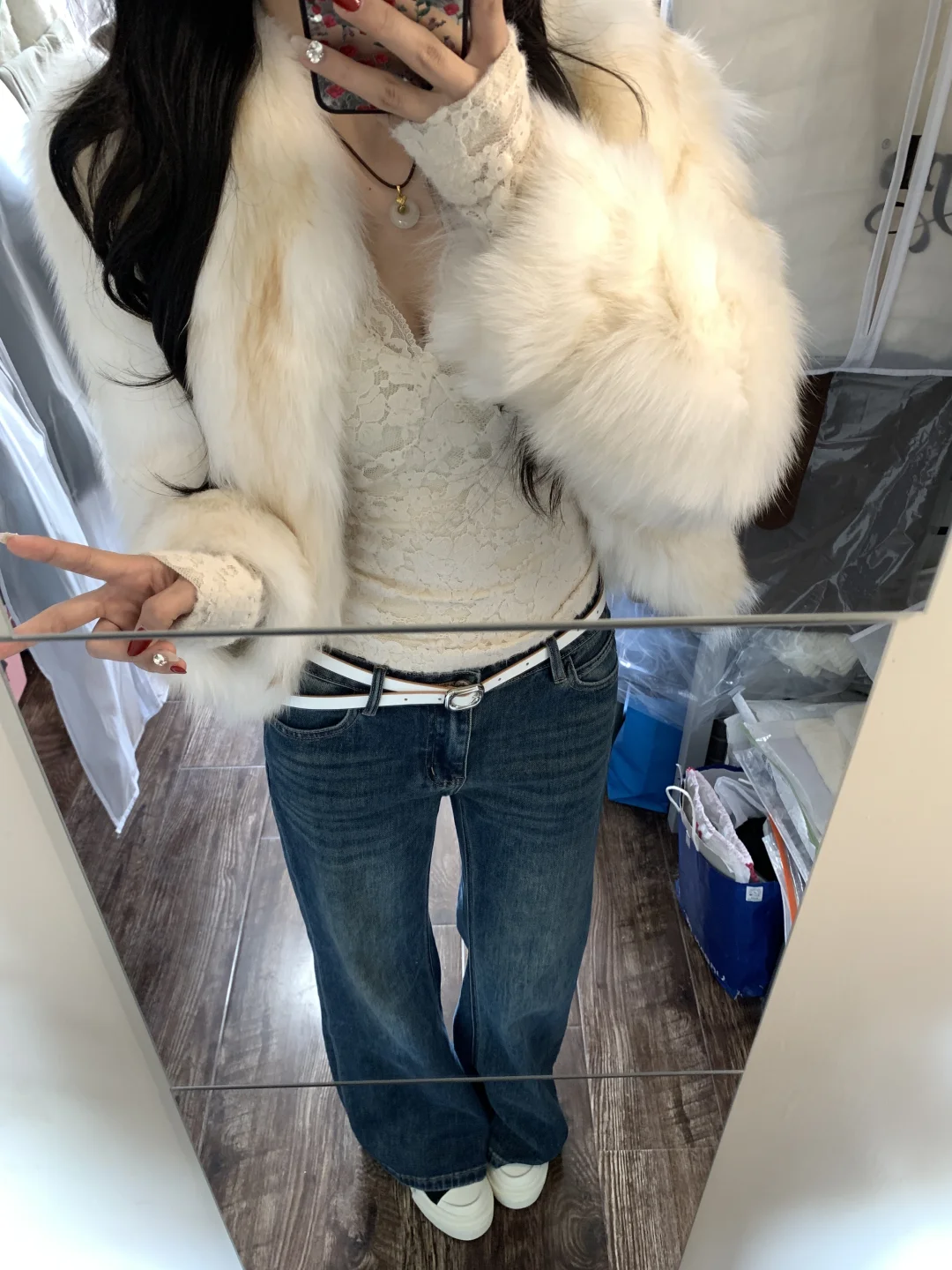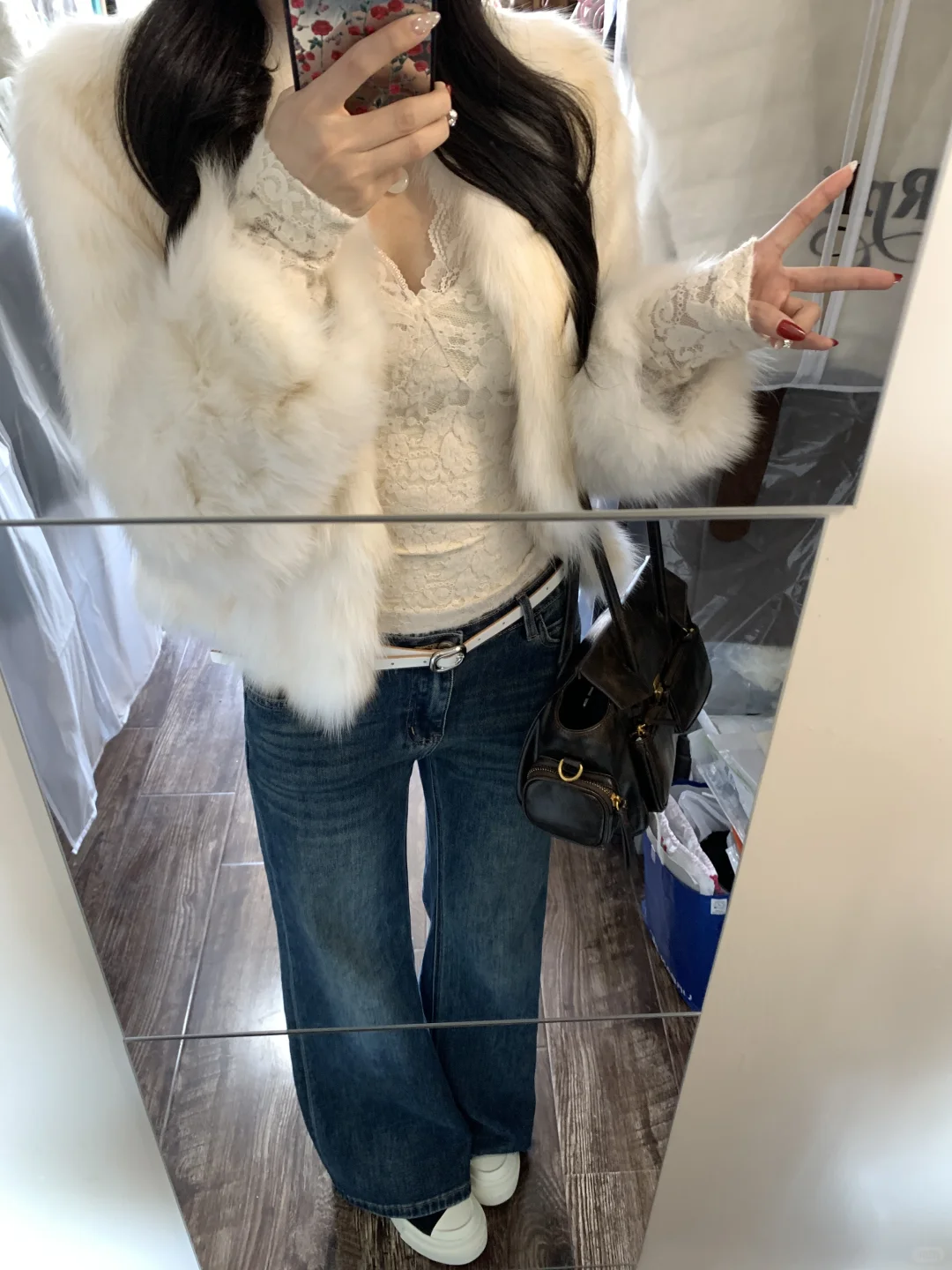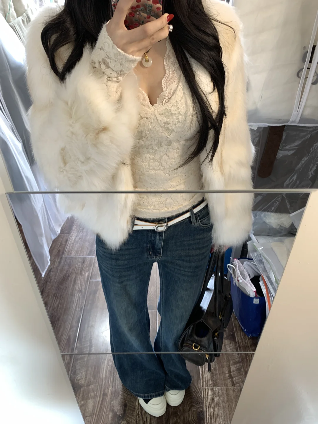 蕾丝内搭➕皮草➕牛仔裤