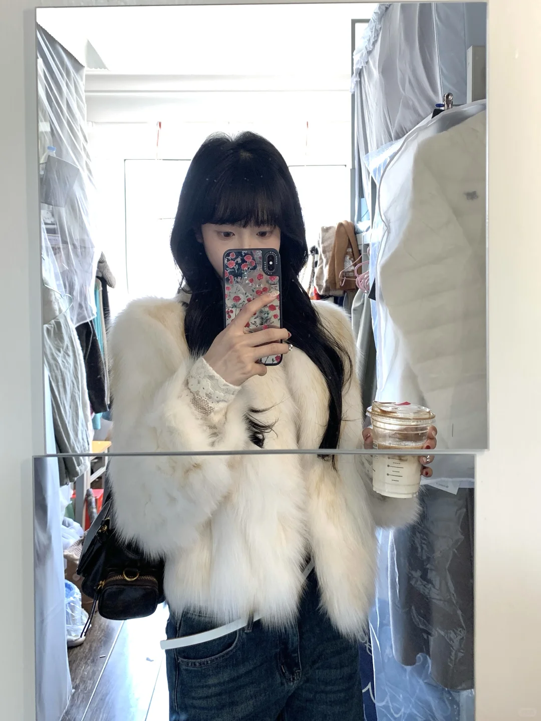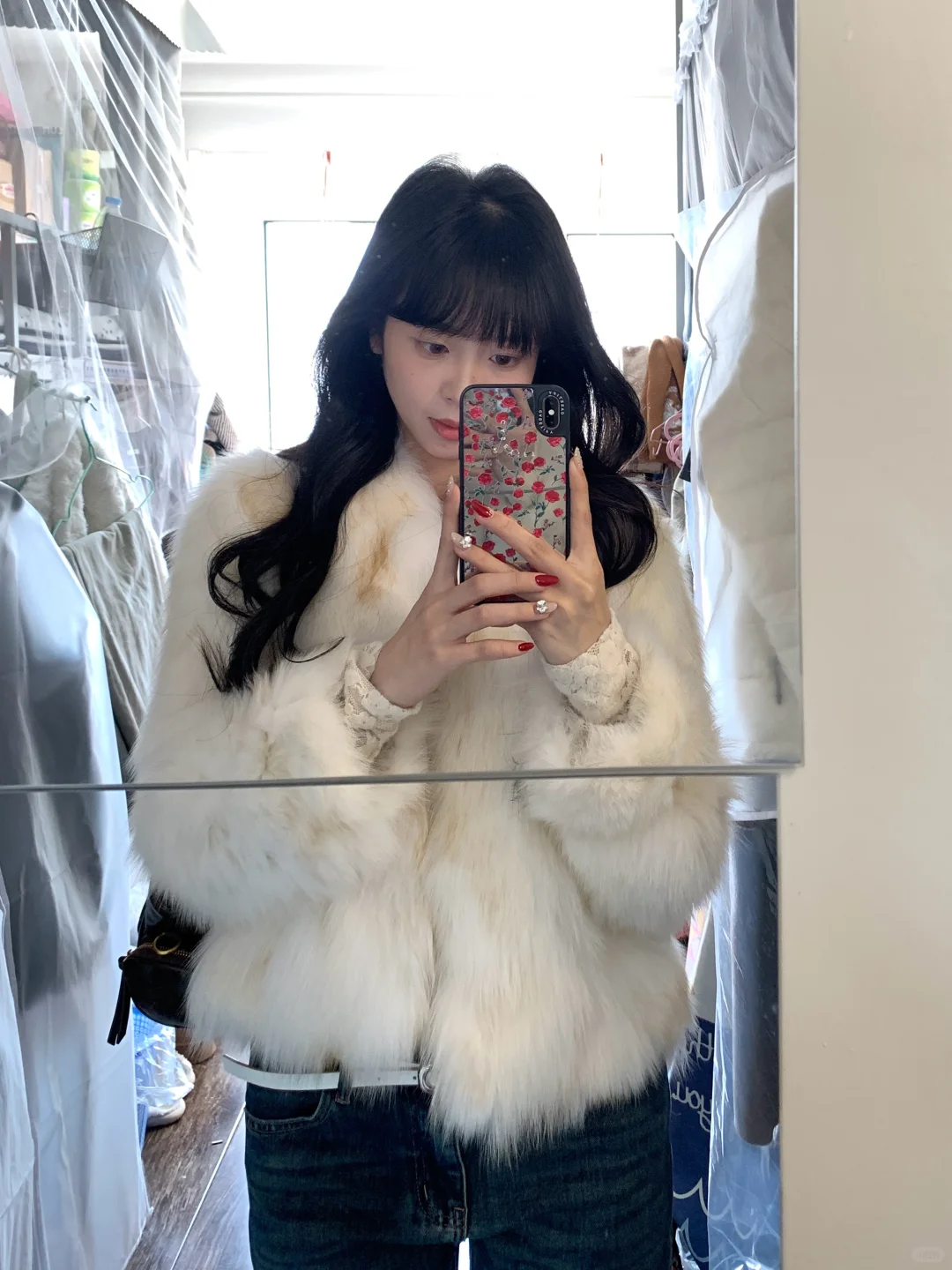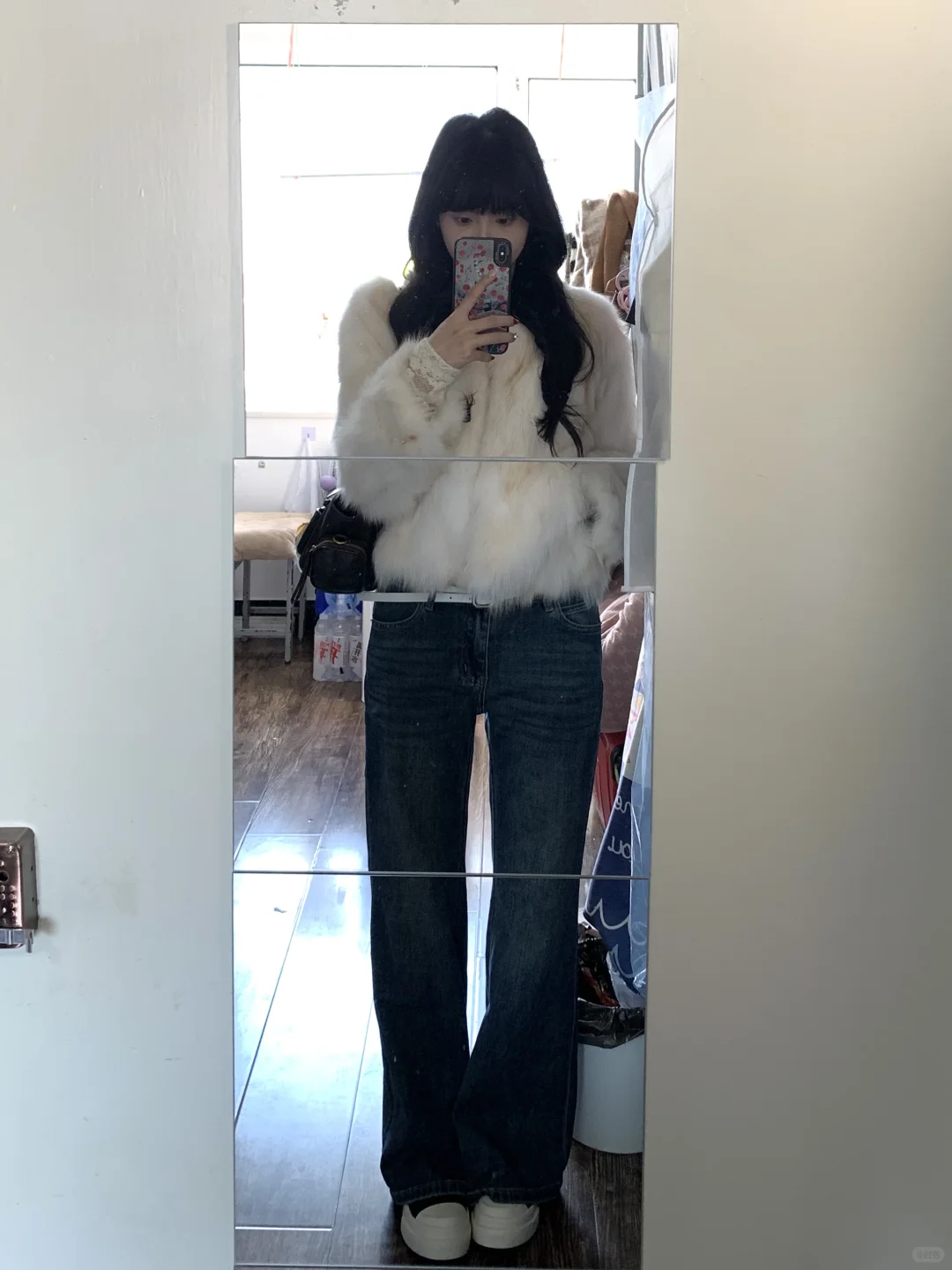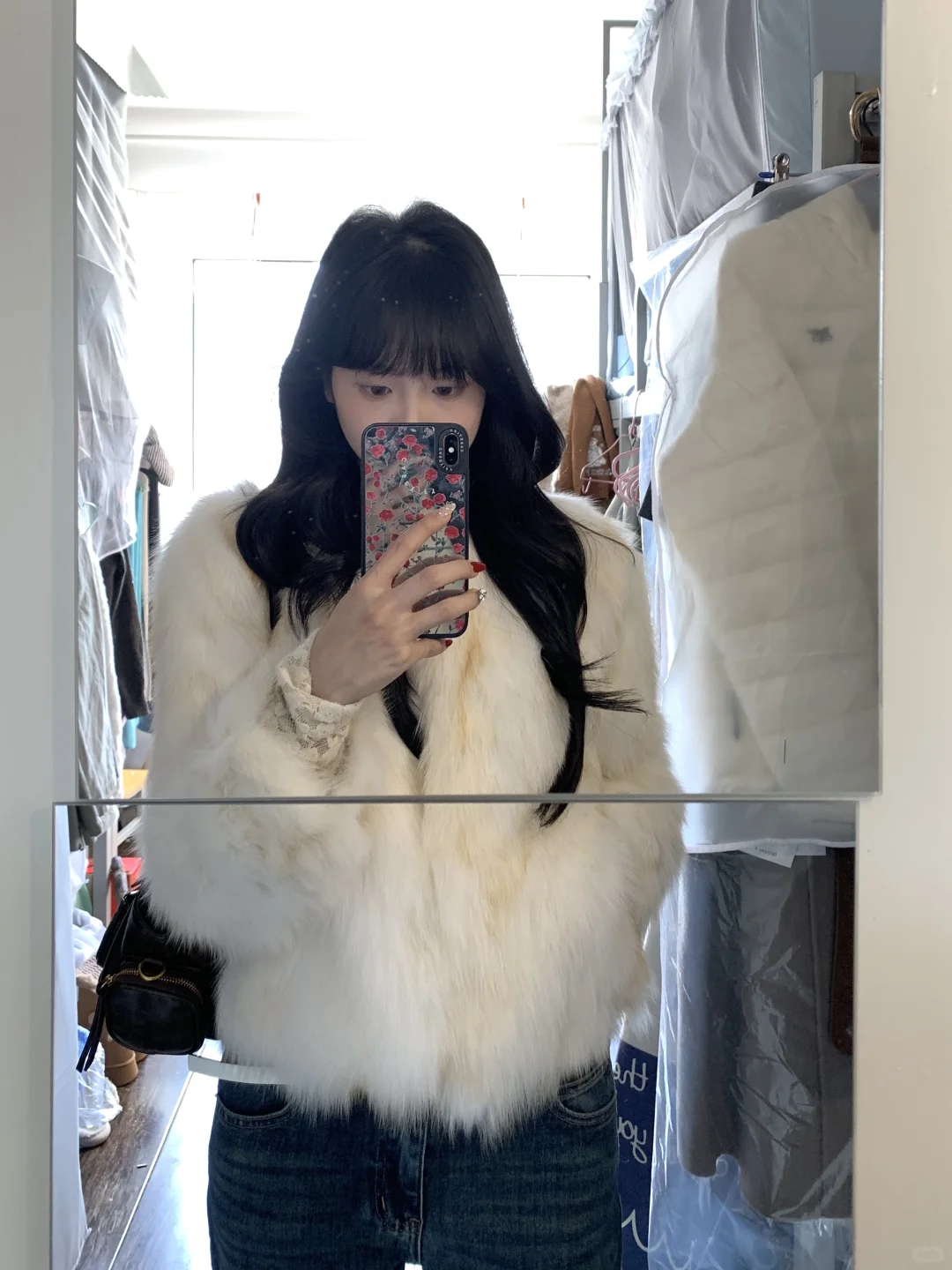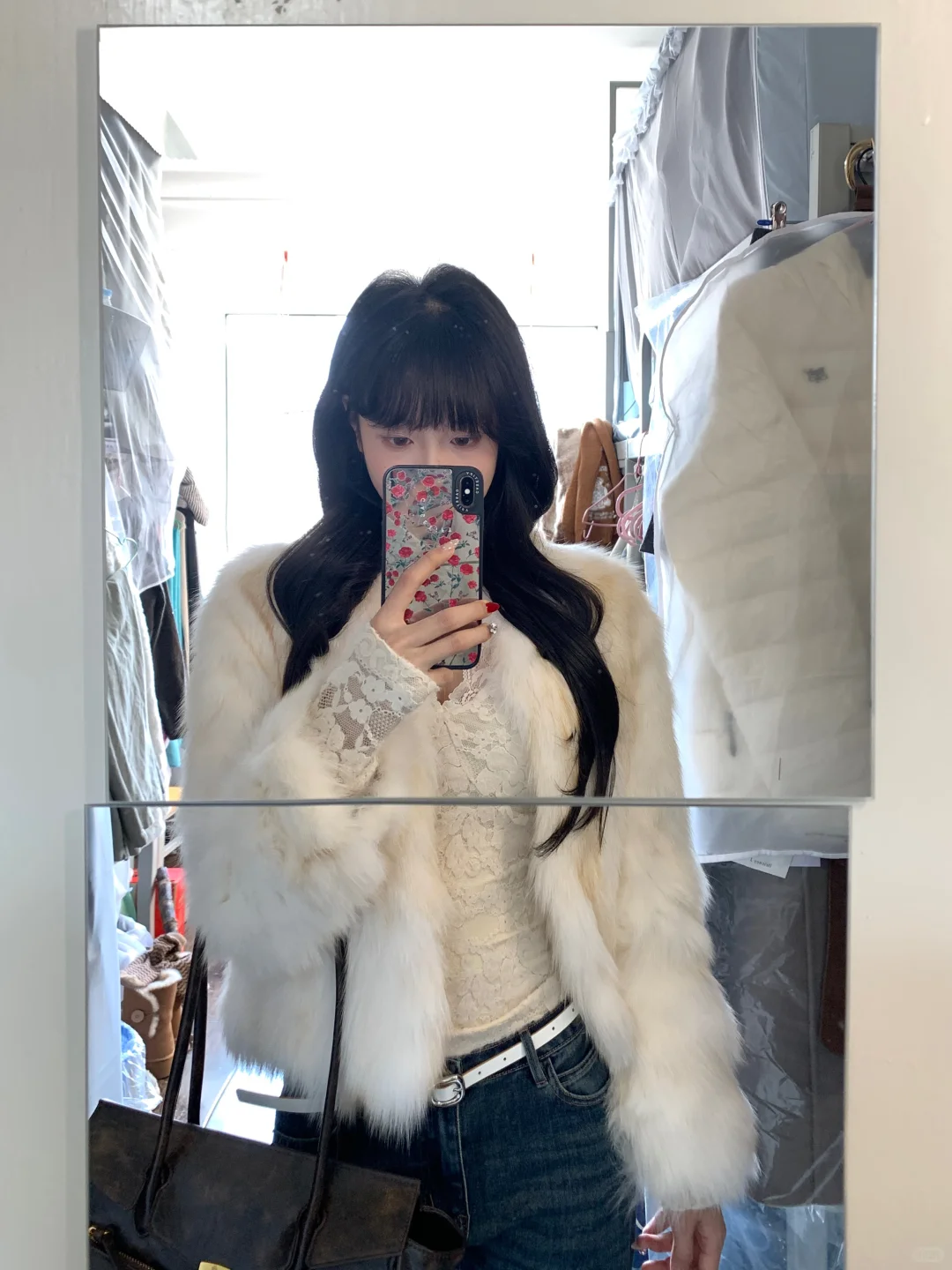 蕾丝内搭➕皮草➕牛仔裤