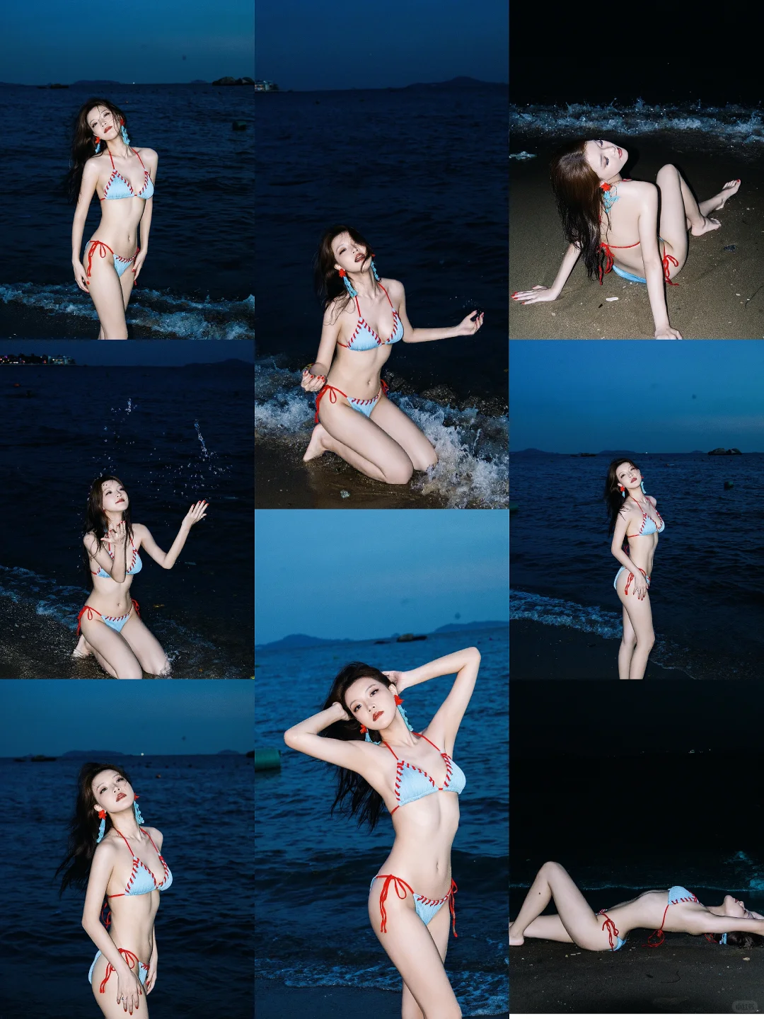 海边比基尼拍照|蓝调时刻拍,美成电影女主