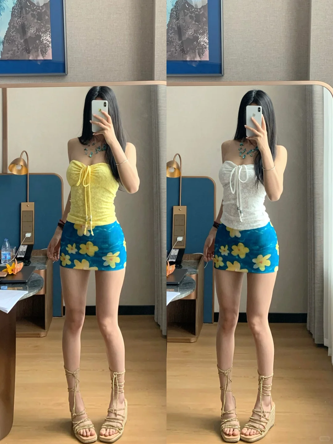 👗:低腰版型 里面有小短裤 不用再穿安全裤啦 穿上真的好辣 好显身材 度假穿妥妥的嘻嘻嘻😬