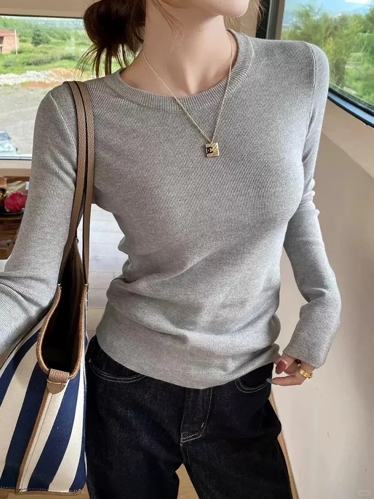 秋日内搭王炸!女款圆领长袖毛衣,薄款不闷还百搭,配外套绝了!✨