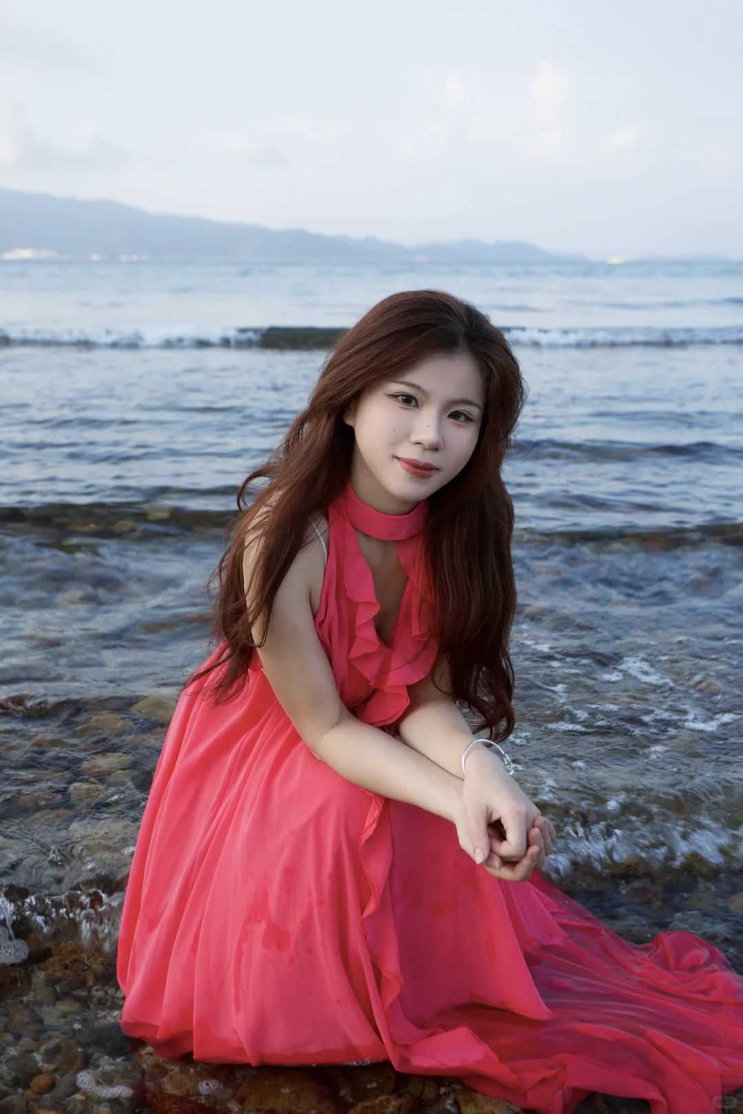 🌊海边出片穿搭|一抹玫红色裙点亮海岸线