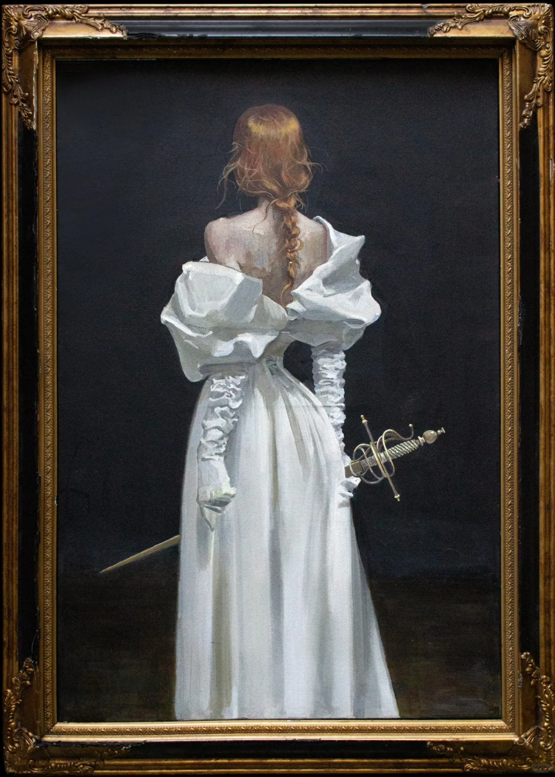 当我们凝视画中女性的背影时,看到的不仅是一幅复古风格的油画,更是女性主义在视觉艺术中的一次深刻宣言: