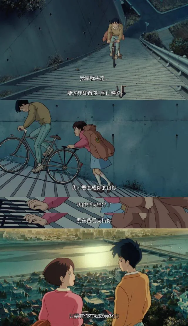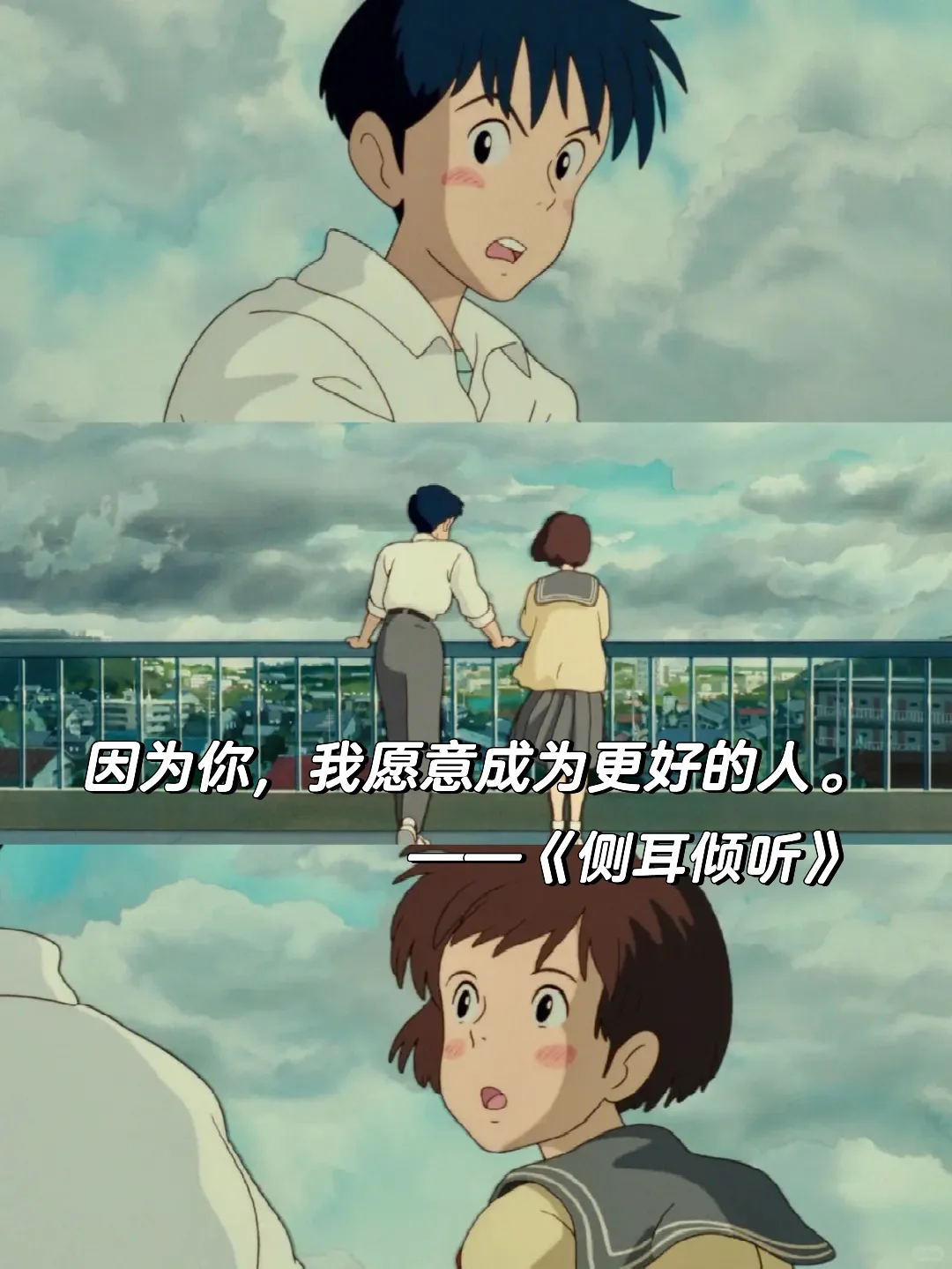 ❤️坠近看了一个动漫电影《侧耳倾听》,故事发生在东京,讲述的是初中女生月岛雯在“地球屋”邂逅男孩天泽圣司,两人之间生了微妙的情感,展开了一段清纯真挚的恋爱故事。他们互相勉励、互相学习,为了各自的理想而奋斗,电影通过男女主角的成长和追求梦想的经历,表达了作者对生活的态度和积极进取的精神。
