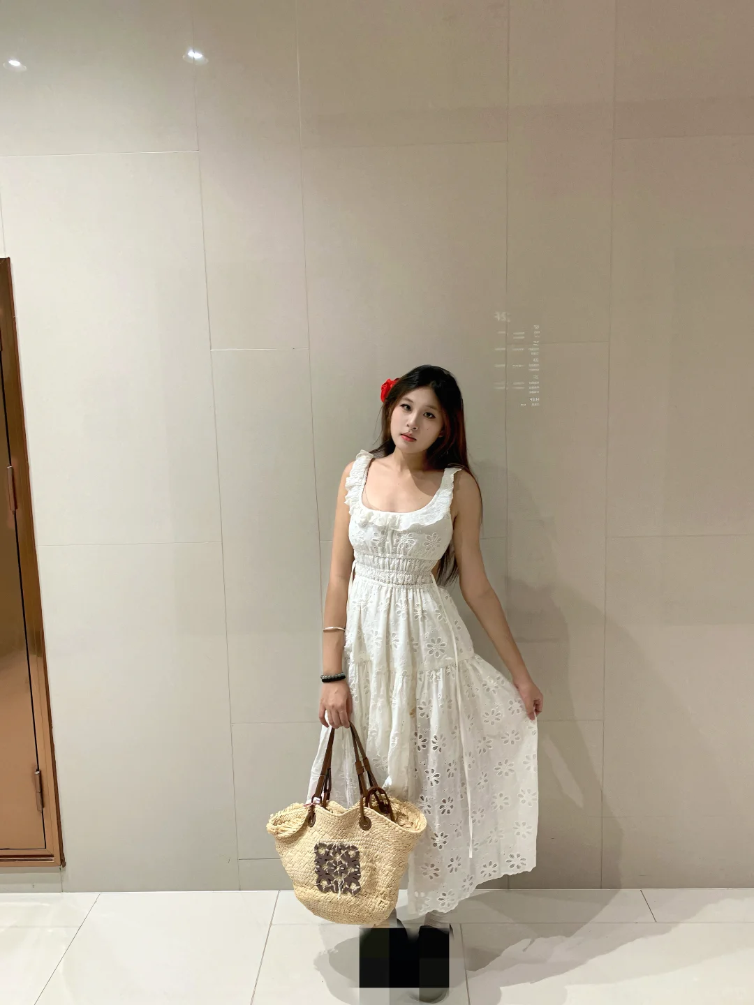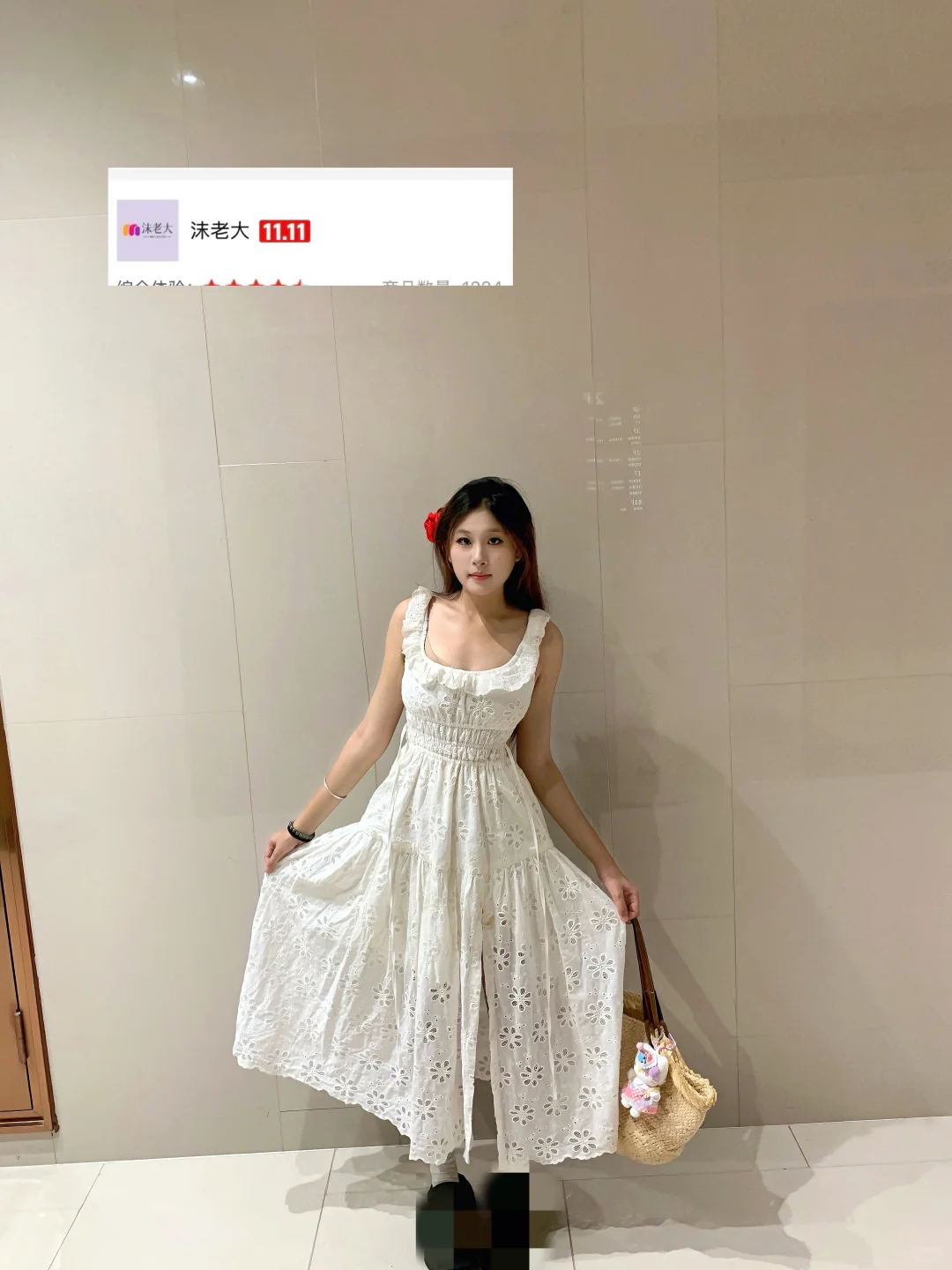 露背小飞袖裙来啦~血条裙子很适合海边穿!!背后露背就刚刚好 布料上有花纹