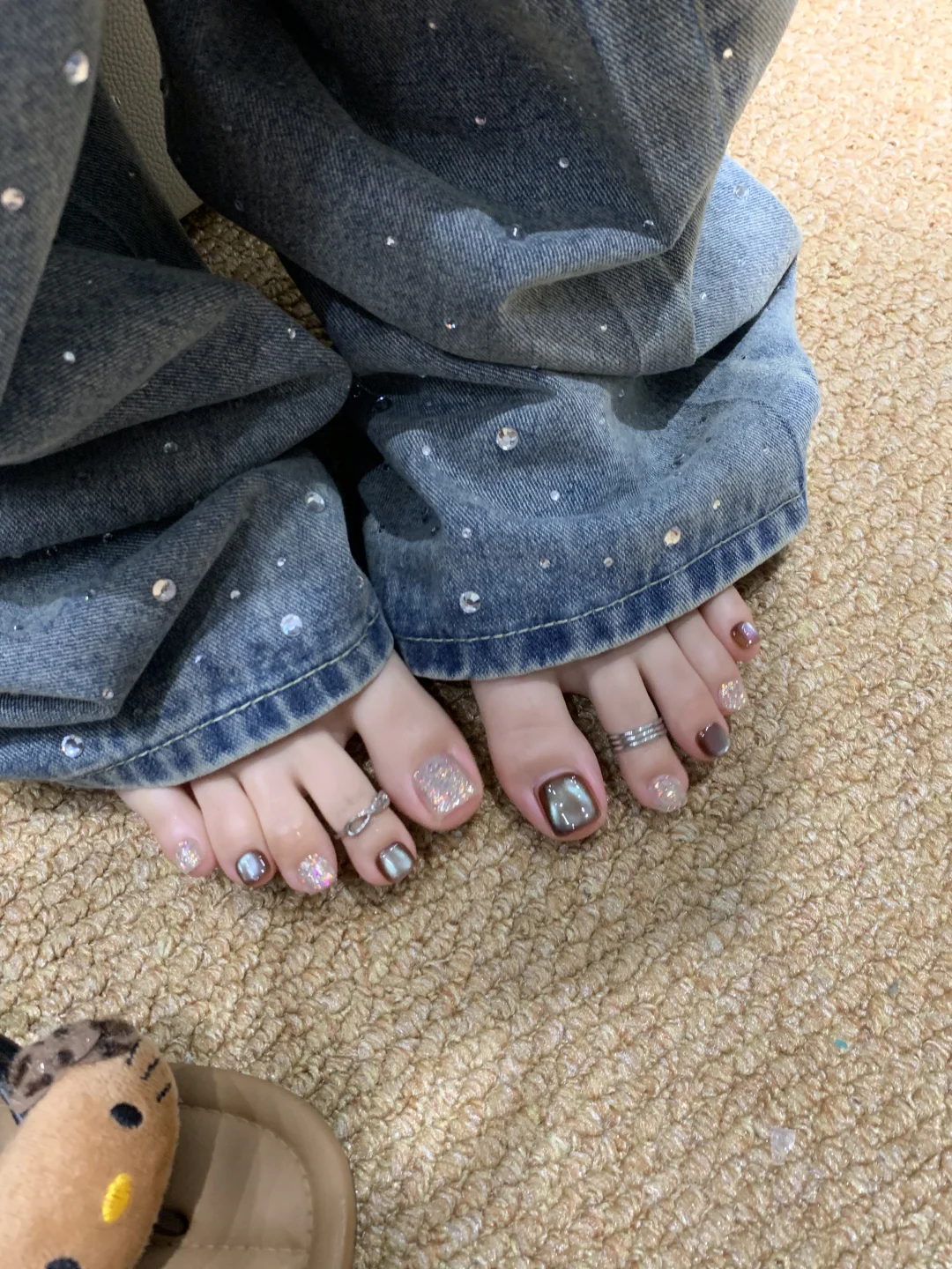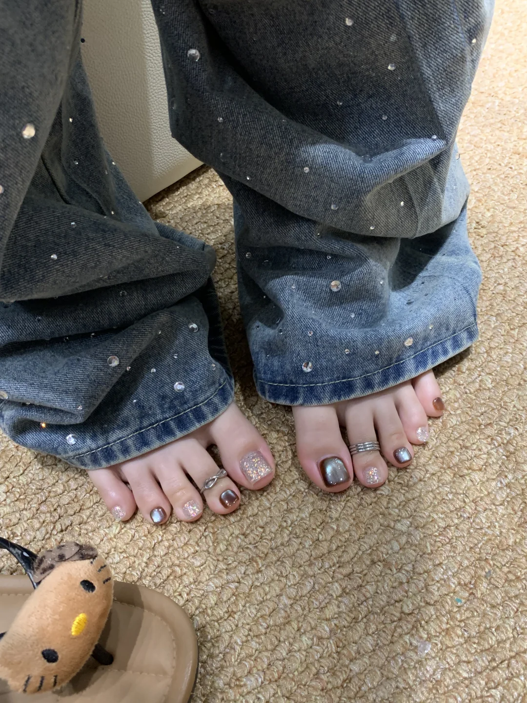 live早秋脚美甲推荐🤩棕底薄荷绿光好特别🤎