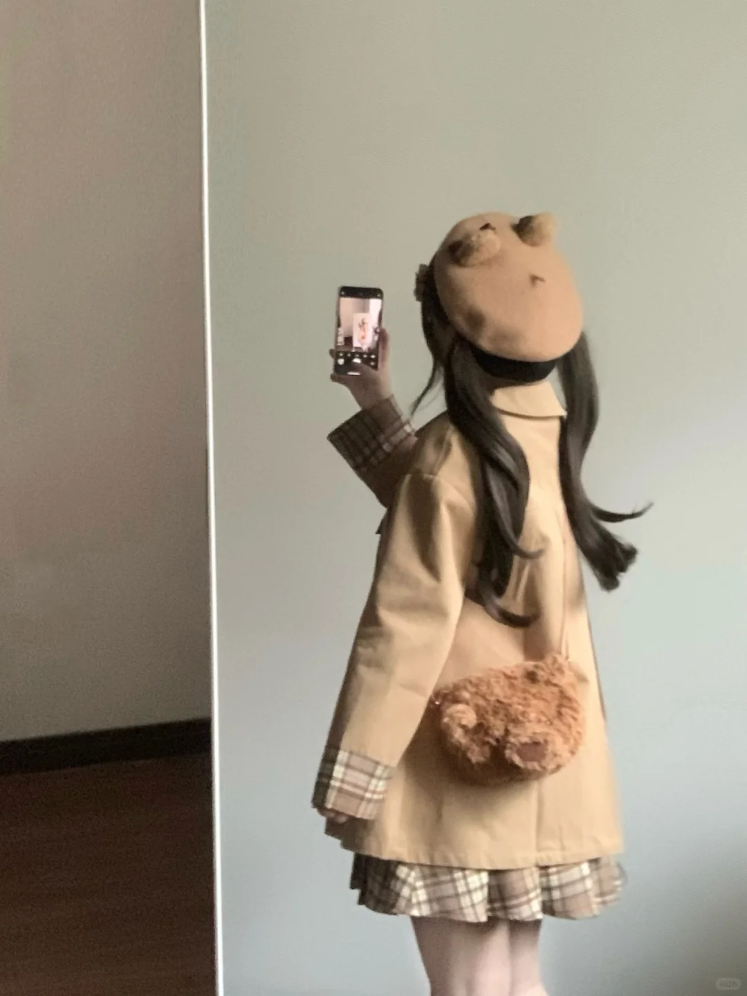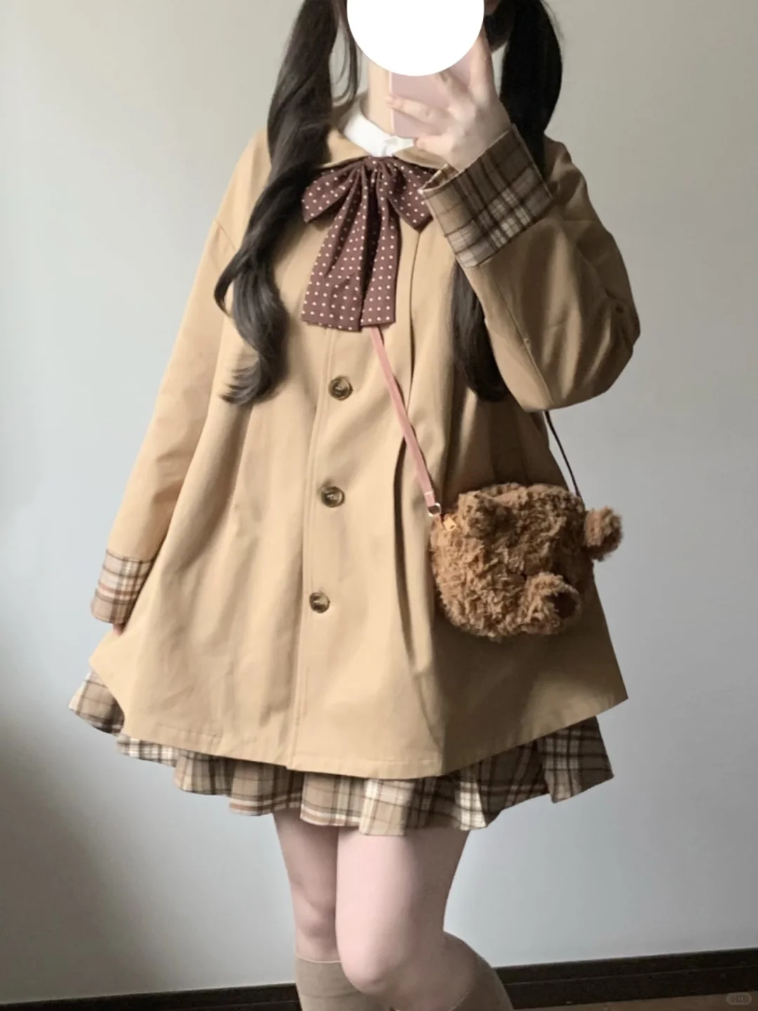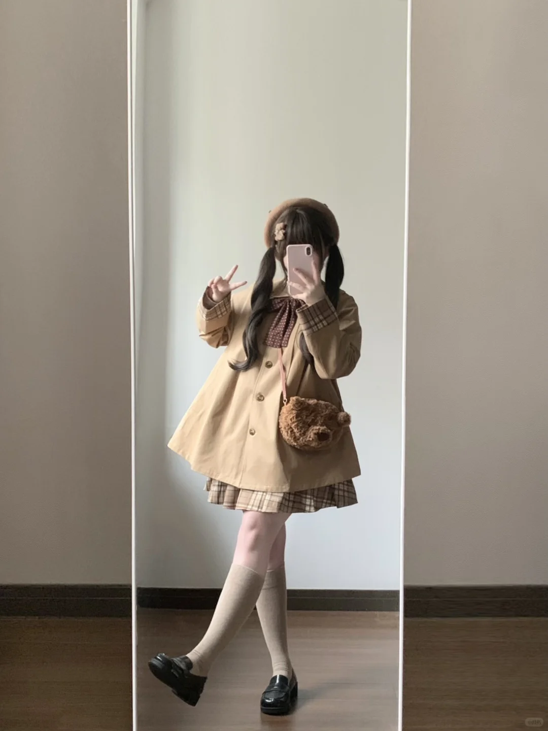 160 120|微胖甜妹秋日棕色系穿搭🧸可爱风衣