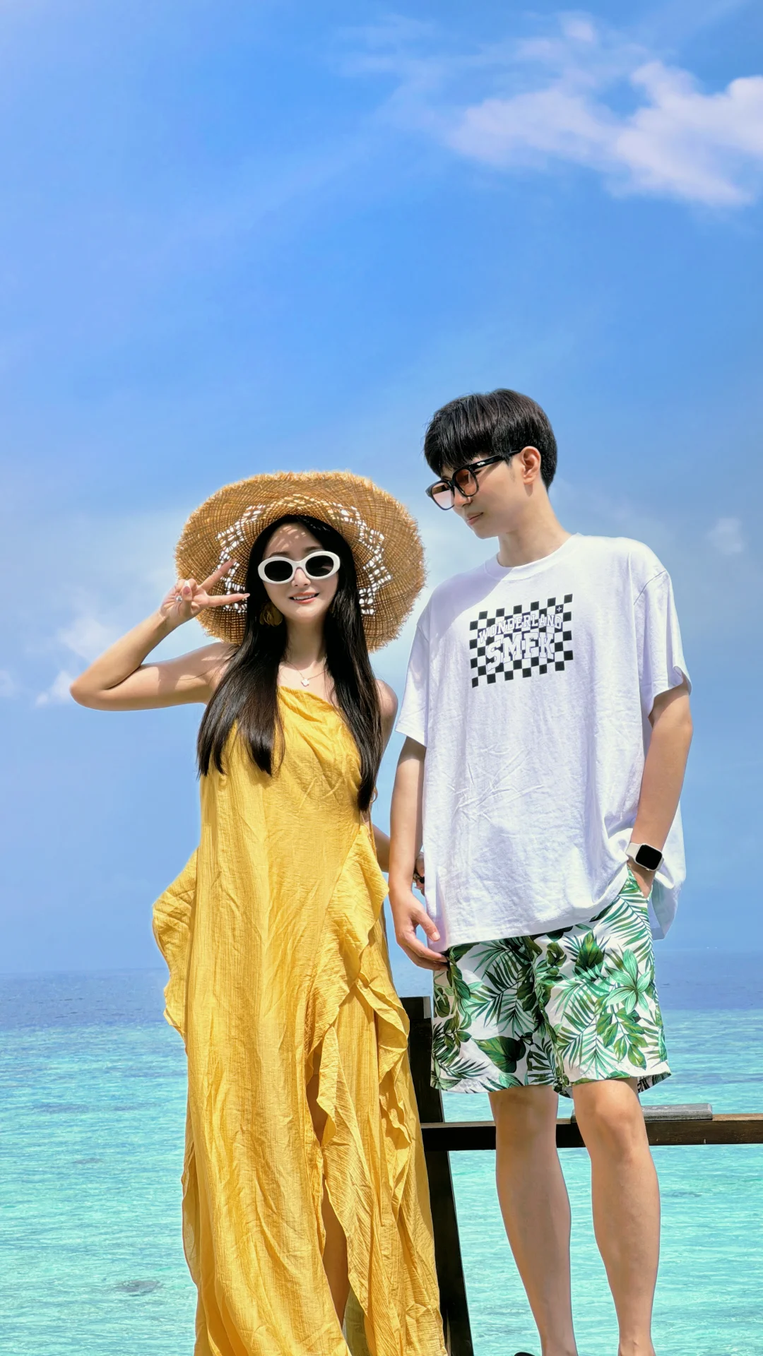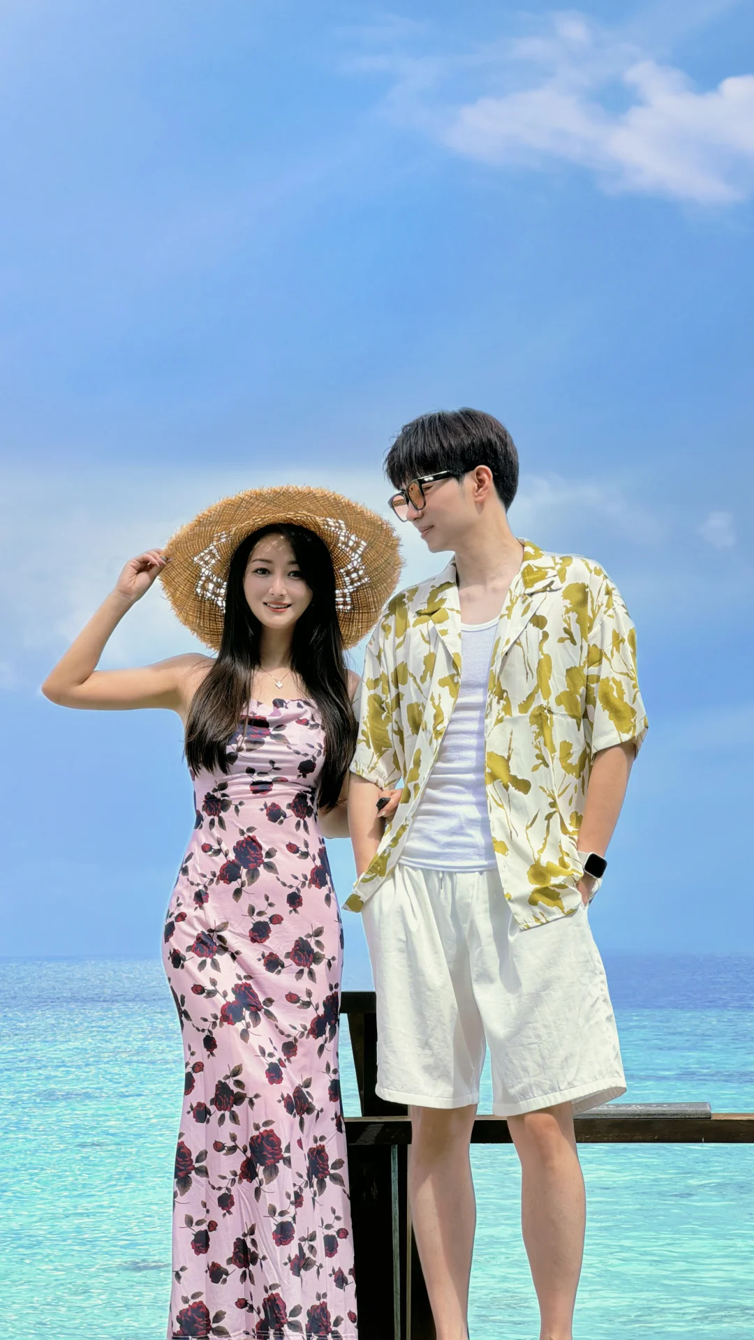 海边度假当然少不了漂亮的小裙子,当然老公作为陪衬那也不能穿的太随意,姐妹们可以参考一下