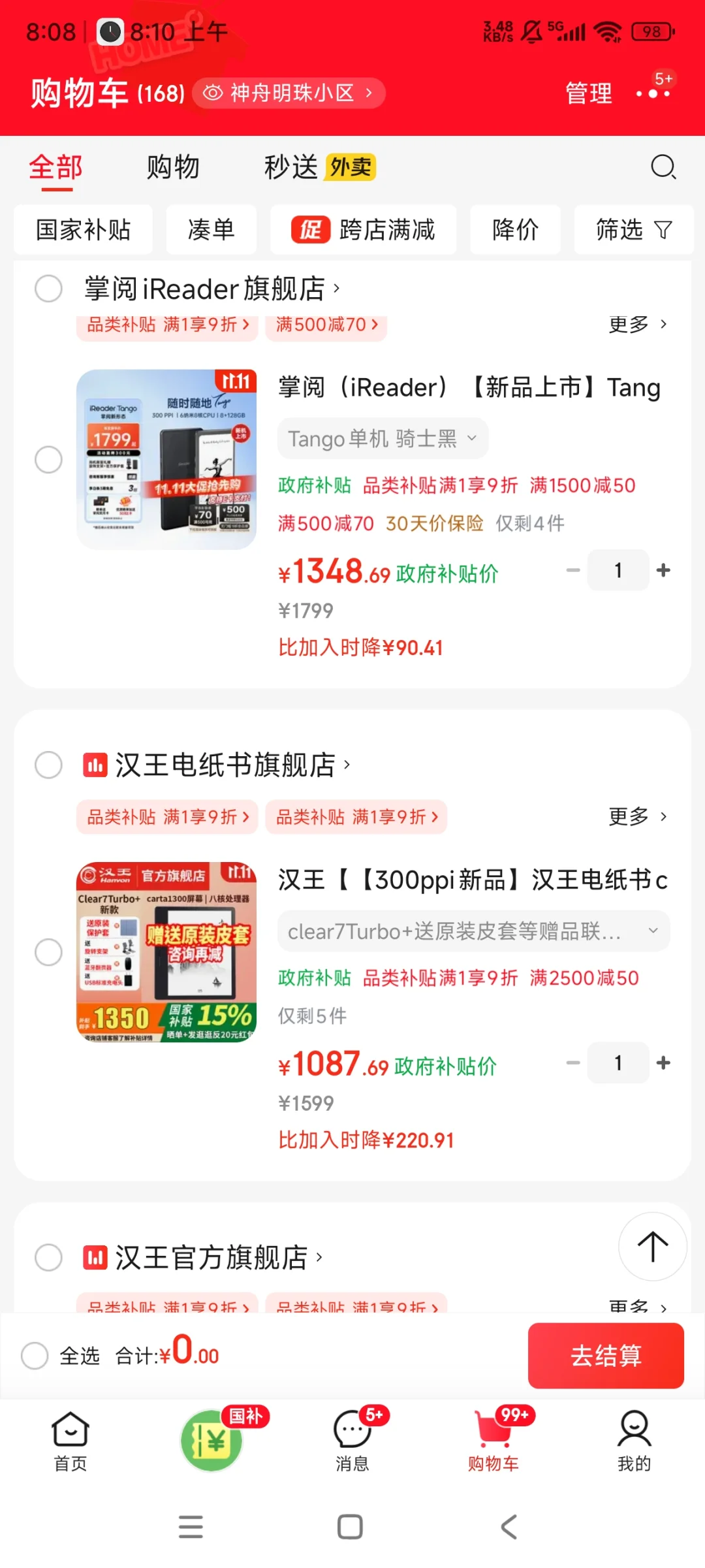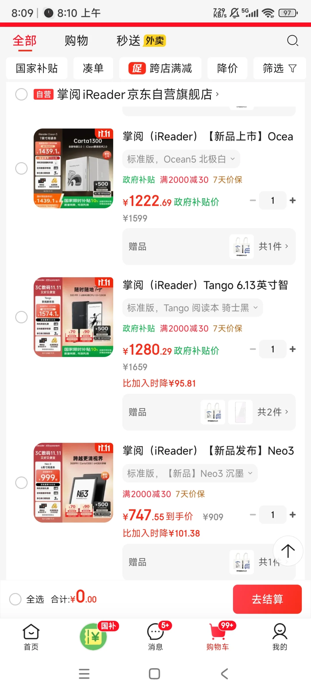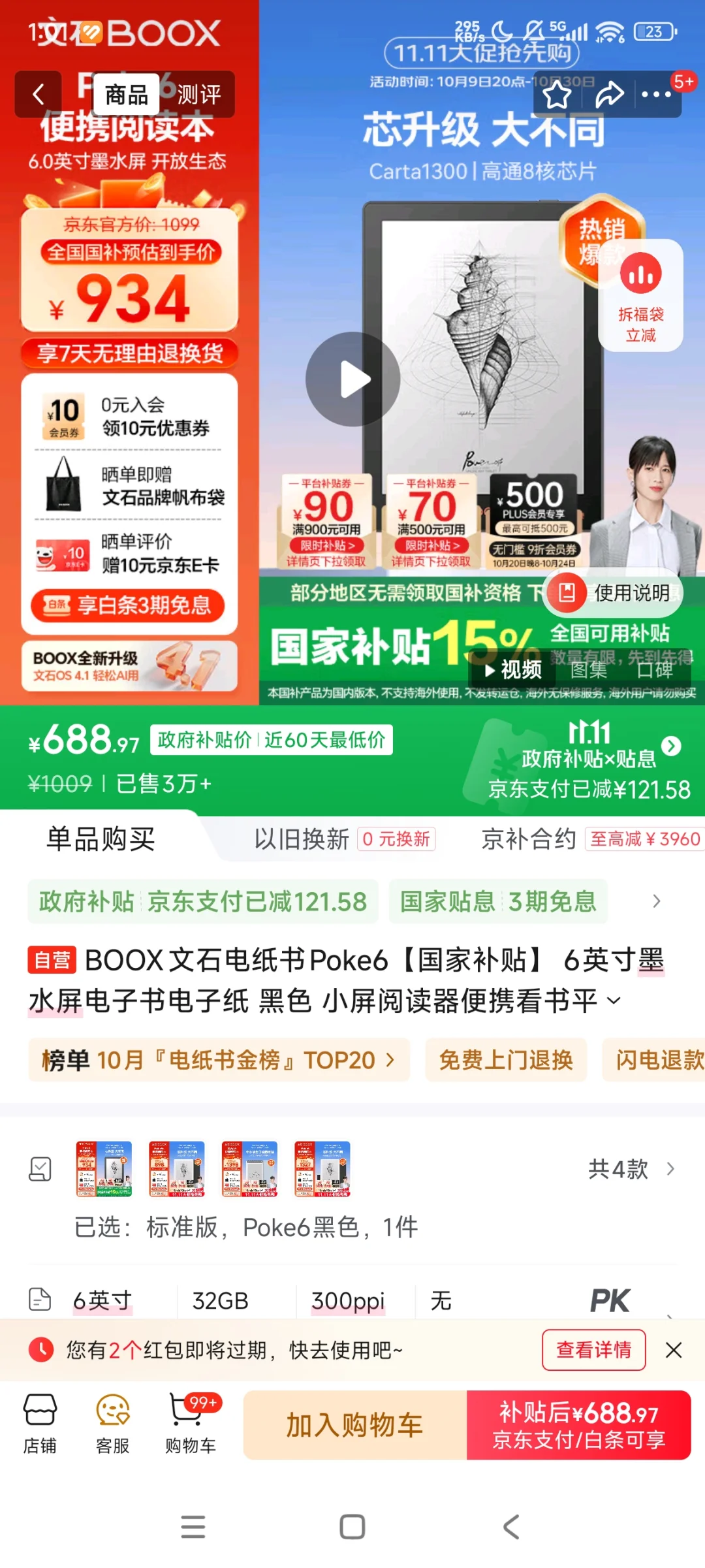 最近关注蹲到的电子书好价。国文R8前两天858还是868来着。其他的,真心都是好价,neo3又涨了,刚去看828了,不过这个价位,必然是文石poke6香啊,6寸,300ppi,开放系统,又是最新的1300屏幕,可惜,我前两天pdd买了poke5,气死我了。#电子书阅读器推荐